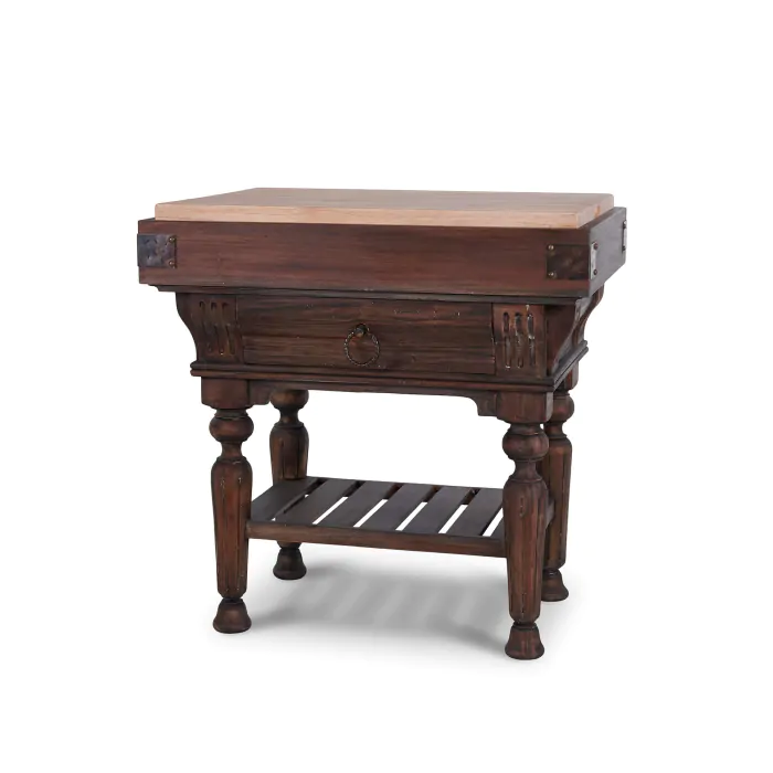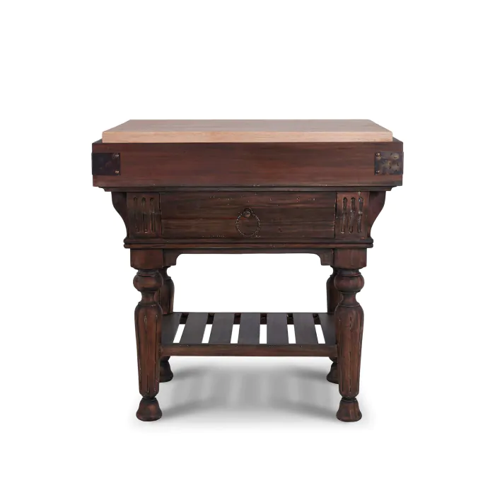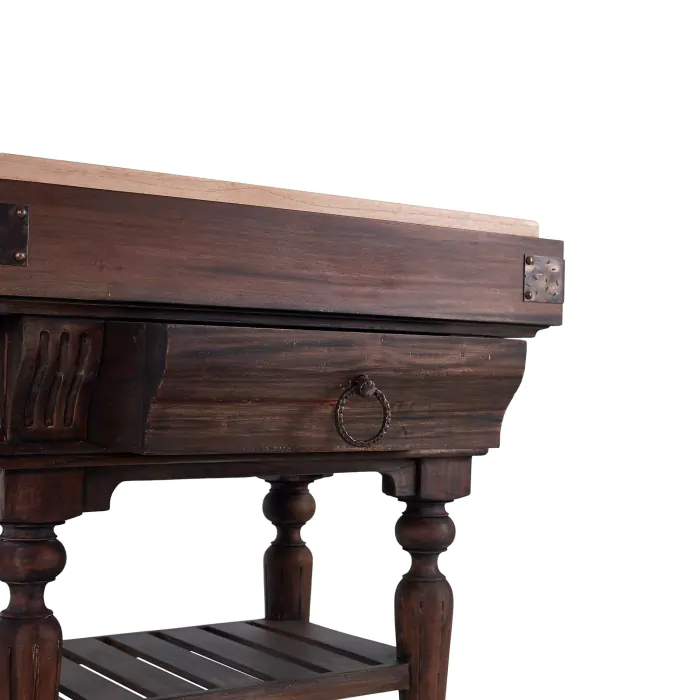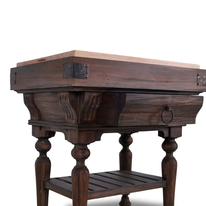 This Small Boucherie is perfect for adding an extra dose of highly fashionable accenting. Made with a fine mahogany woo construction, this lovely table also offers a dovetail drawer for easy storage. This piece is offered with a vast array of finish and distress options to create a truly custom design.