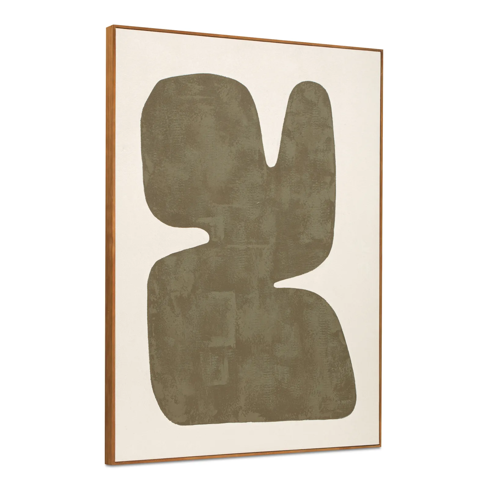 The Soha framed painting bridges bold modernism and everyday sophistication. Rich sage green hues dance against an off-white background, creating a harmonious balance. This abstract, free-form painting is encased in a solid pine frame, adding warmth and natural charm.