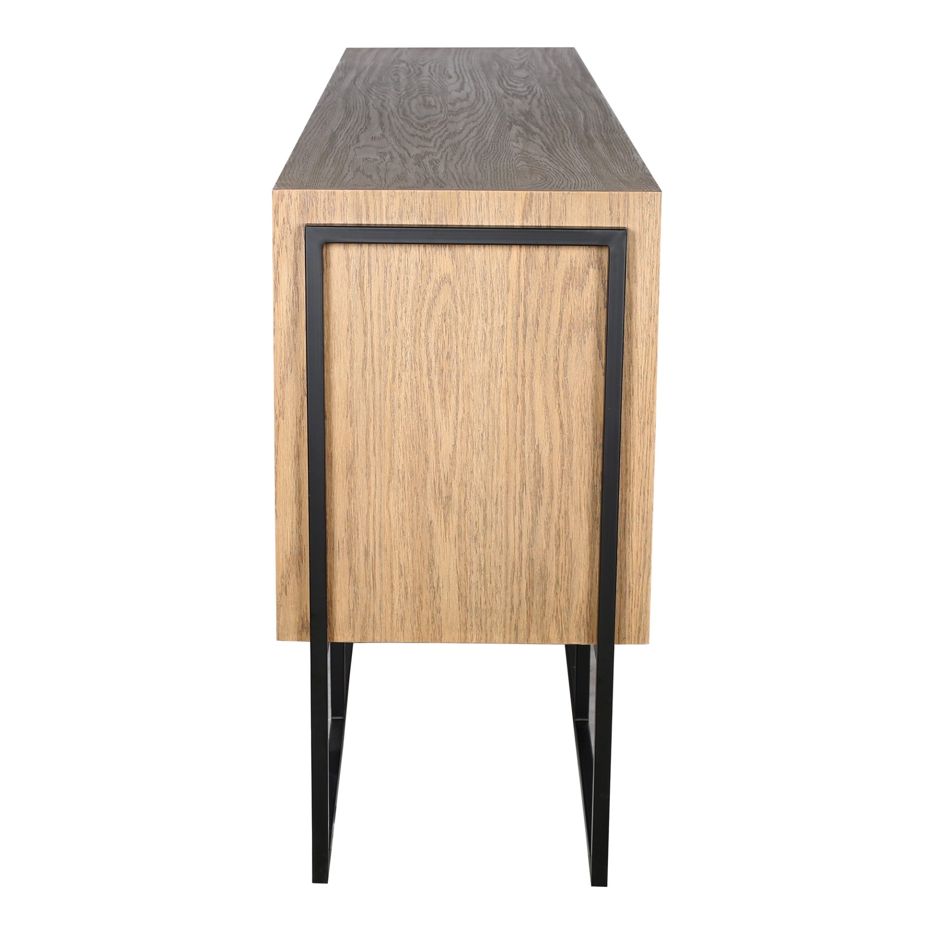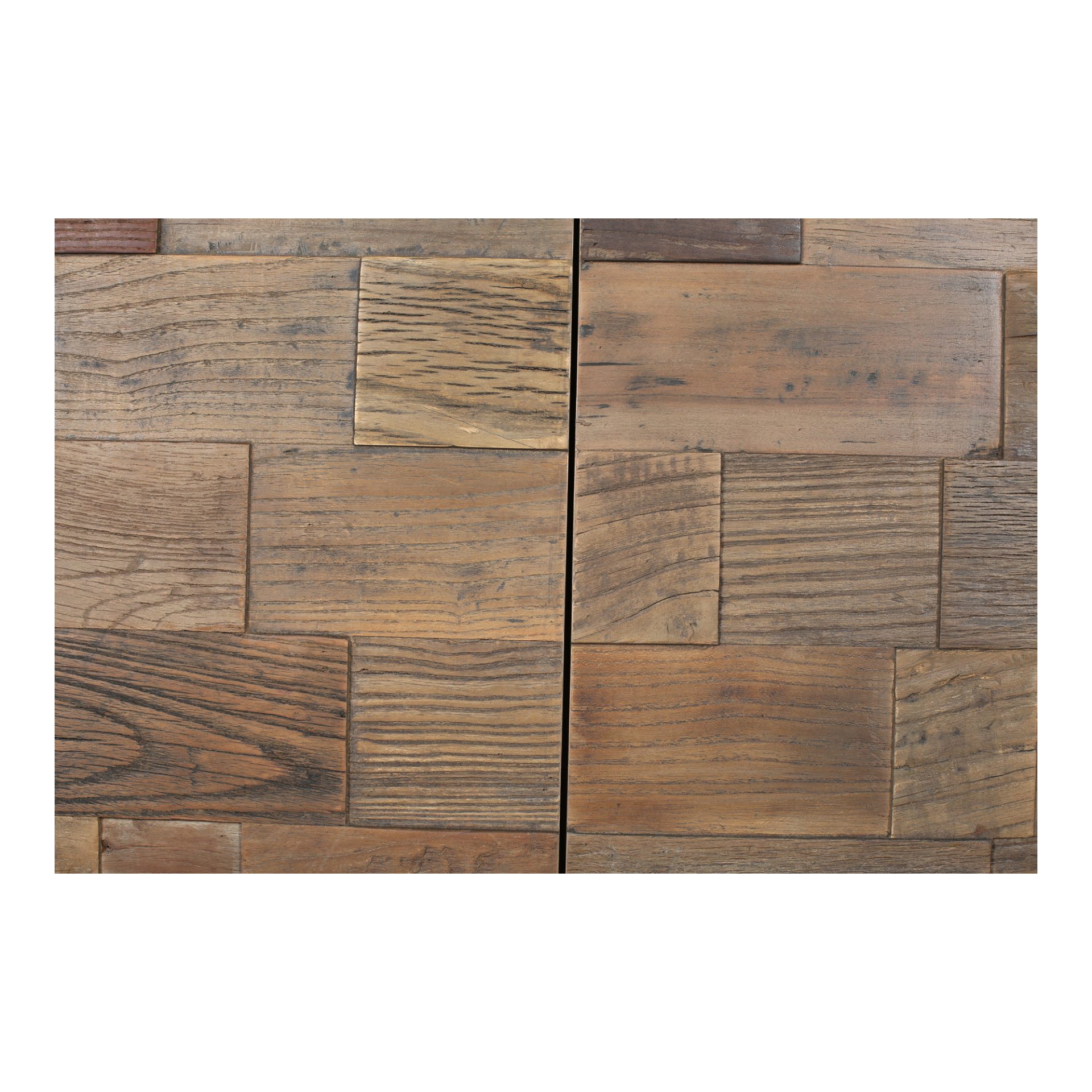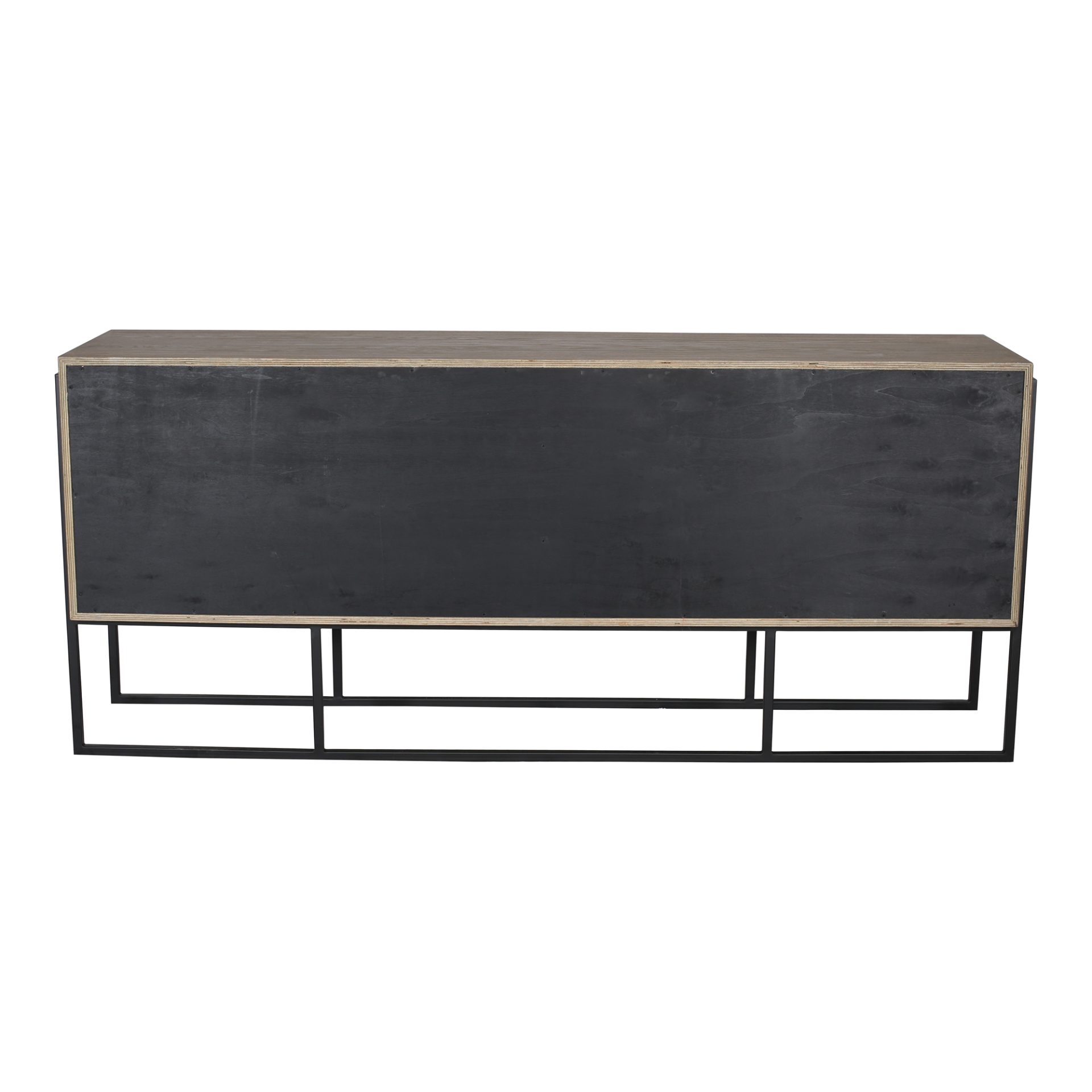 The Solani Sideboard tells a rich story through its use of solid reclaimed elm wood. Each square has its own unique pattern with certain kind of wear that adds character to any home décor. This sideboard buffet is support by a metal frame, and has barn style doors to simplify storage and accessibility.