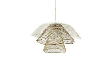Make a splash with Sonna. Featuring an organic, flowing design inspired by jellyfish, the Sonna pendant lamp’s layered iron mesh shade offers glam appeal. Each of its three shades provides a different metallic finish, giving this eye-catching lamp an eclectic elegance. Available in two sizes, the Sonna and Sella hanging pendant lamps will float beautifully over your dining table, your bed, or anywhere else you could use a little illumination.