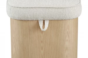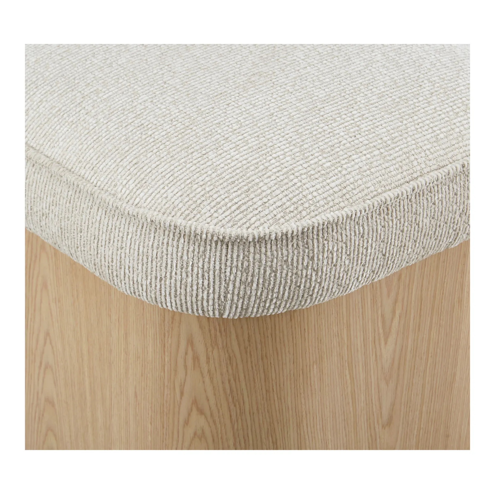 The Sonny stool elegantly articulates the luxury of simplicity with an ash veneer base and a lift top that unveils discreet storage. Upholstered in flecked oatmeal fabric, the plush seat contrasts the wood’s solid nature with piping that traces its contours. Curved corners soften the stool’s silhouette, creating a serene yet functional piece.