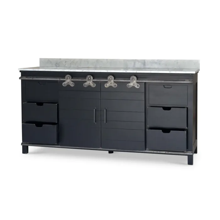 Start every morning with enough personal space of your own. This Sonoma Double Vanity is more than just a mere washbasin, its fine craftmanship is portrayed with well thought function to put your necessities on the side of the sink or inside its closed cabinets. This piece is available in a variety of finish and distress options to make it truly yours.