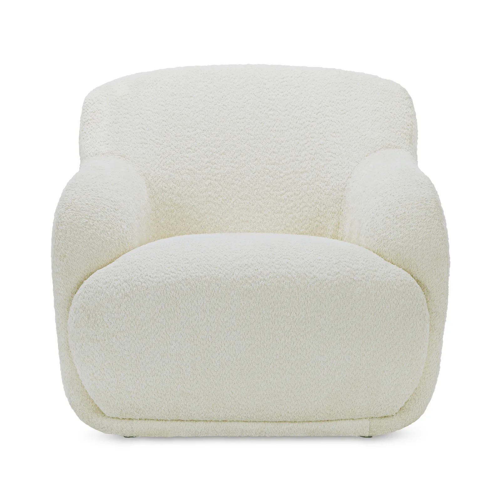 Cancel your plans—Stevie’s calling. Designed with downtime in mind, this lounge chair wraps you in comfort with soft curves, a high back, and arms that gently swoop into its spacious seat. Upholstered in a GRS-certified, 50% recycled cream fabric, Stevie pairs cozy texture with contemporary style. A durable frame of MDF, plywood, and pine supports all that sink-in comfort. Sculptural and lounge-ready—because comfort should never be one-note.