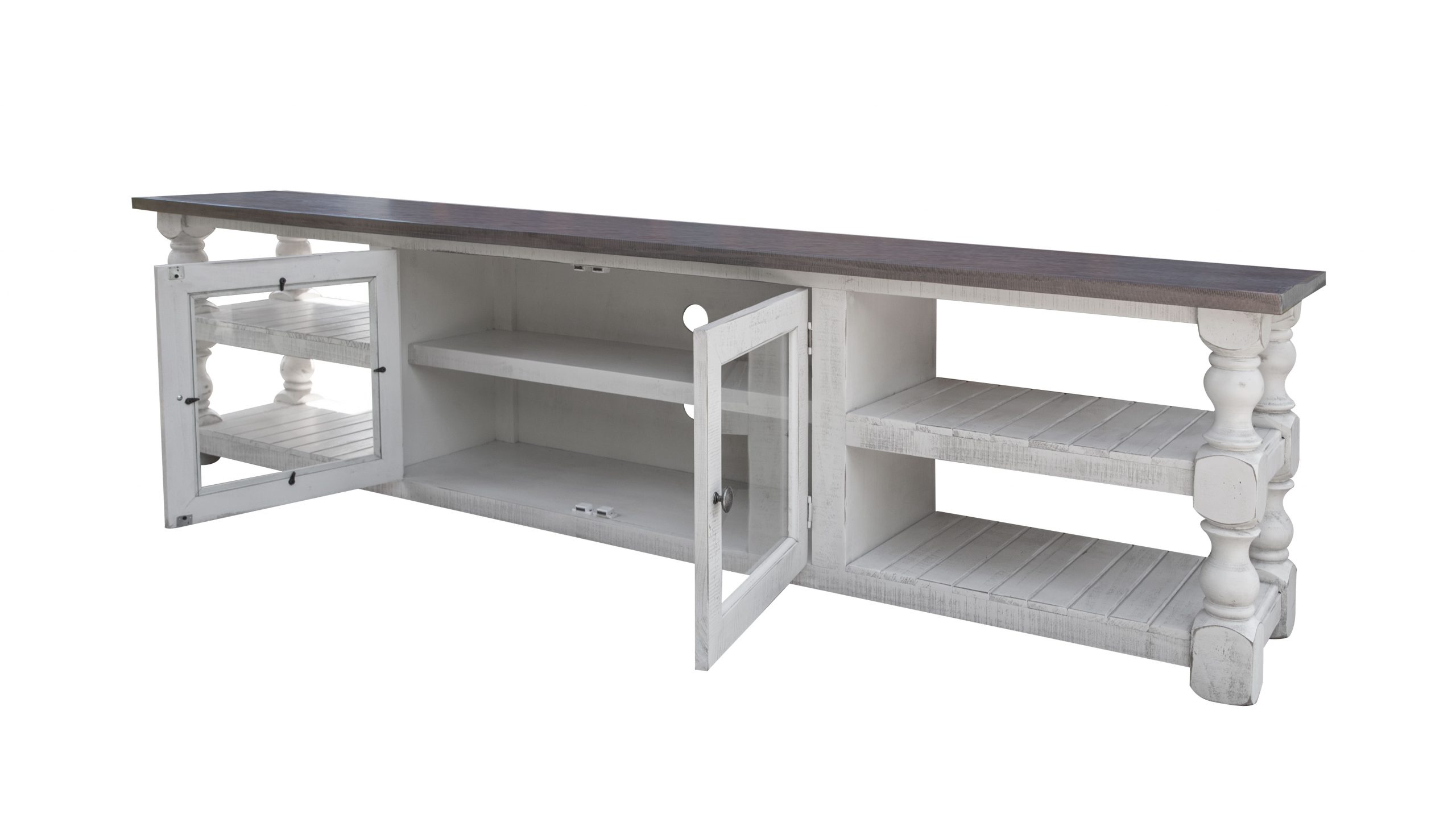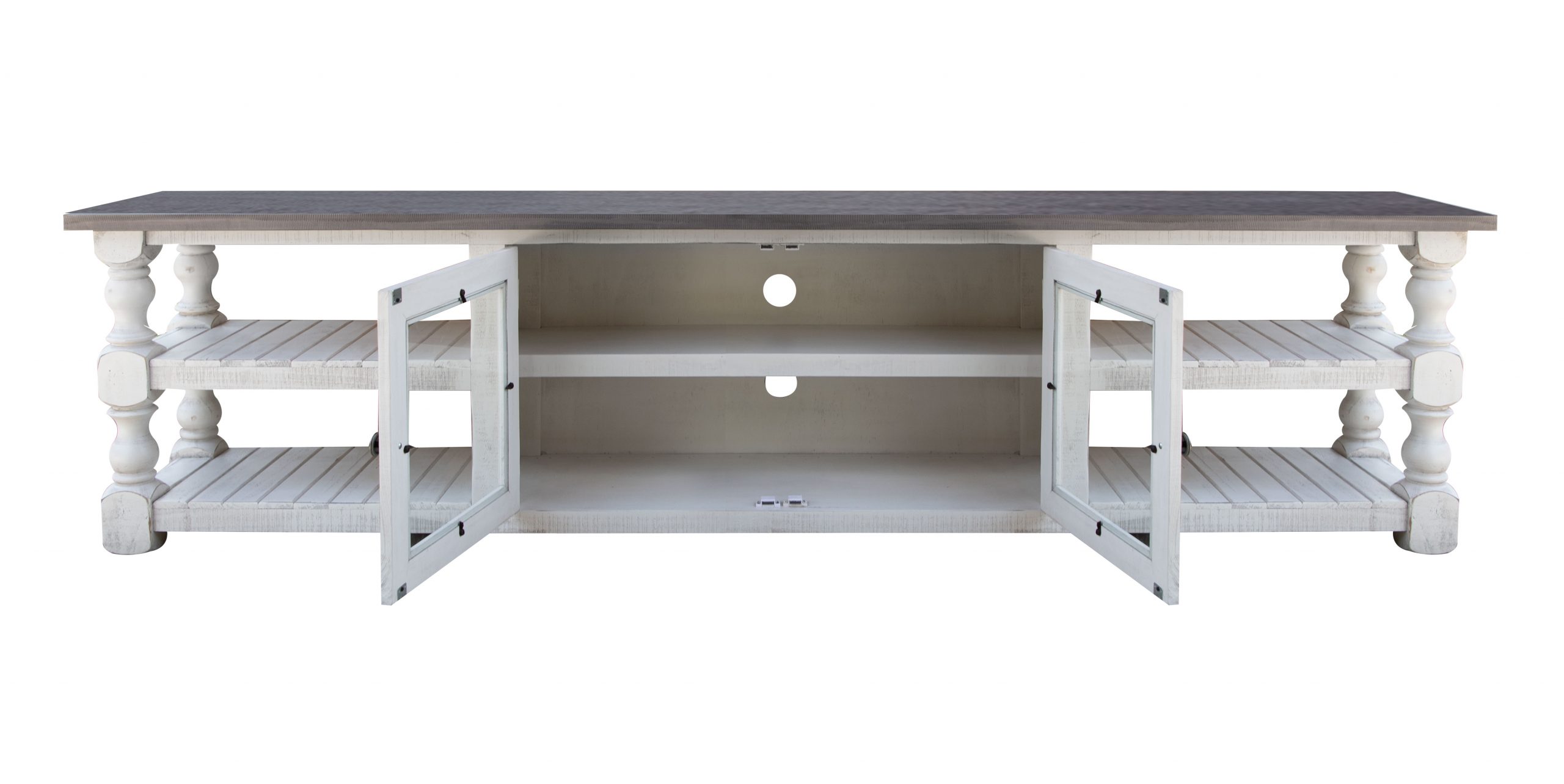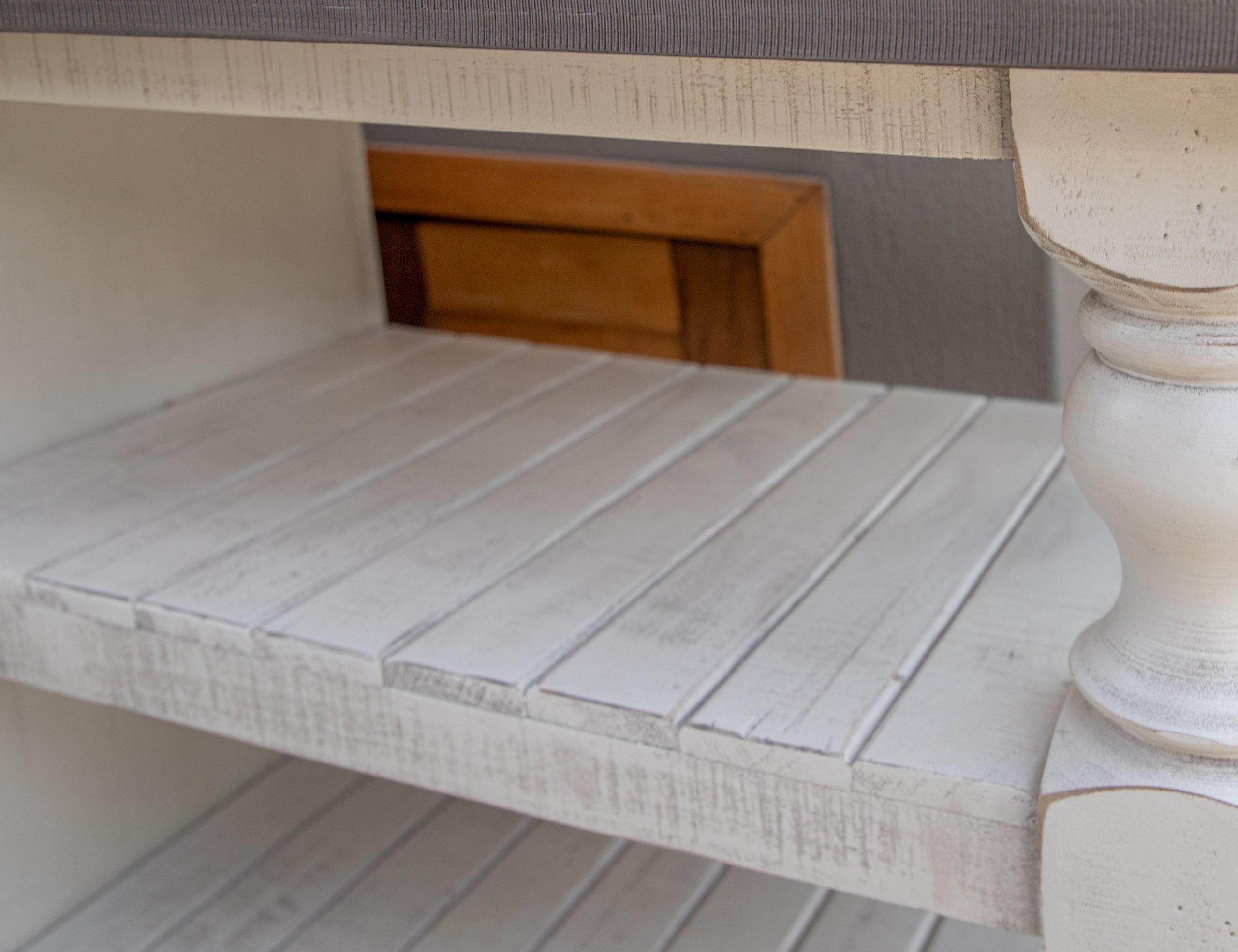 • Exuding farmhouse chic with just the right touch of old-world charm, the Stone Collection is meticulously crafted from solid pine wood. The wood is lightly distressed, showcasing a white finish and complemented by weathered gray tops.