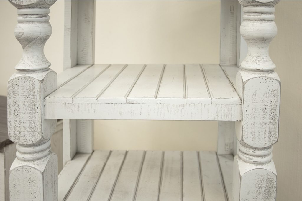 • Exuding farmhouse chic with just the right touch of old-world charm, the Stone Collection is meticulously crafted from solid pine wood. The wood is lightly distressed, showcasing a white finish and complemented by weathered gray tops.