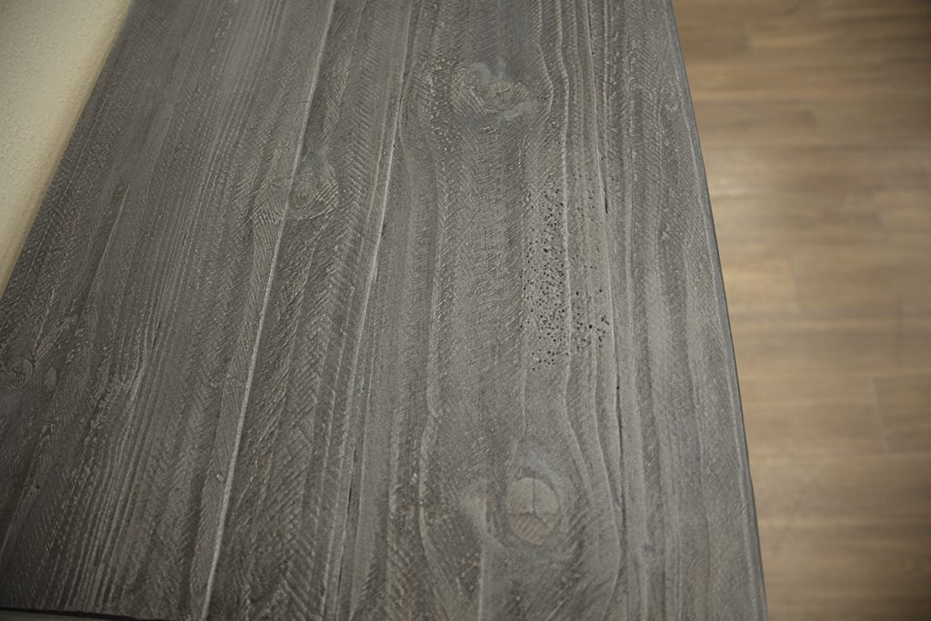 • Two-tone, multi-step lacquer finish. The top features a weathered gray finish on hand-distressed wood, while the rest of the case has an eggshell antiqued finish.
