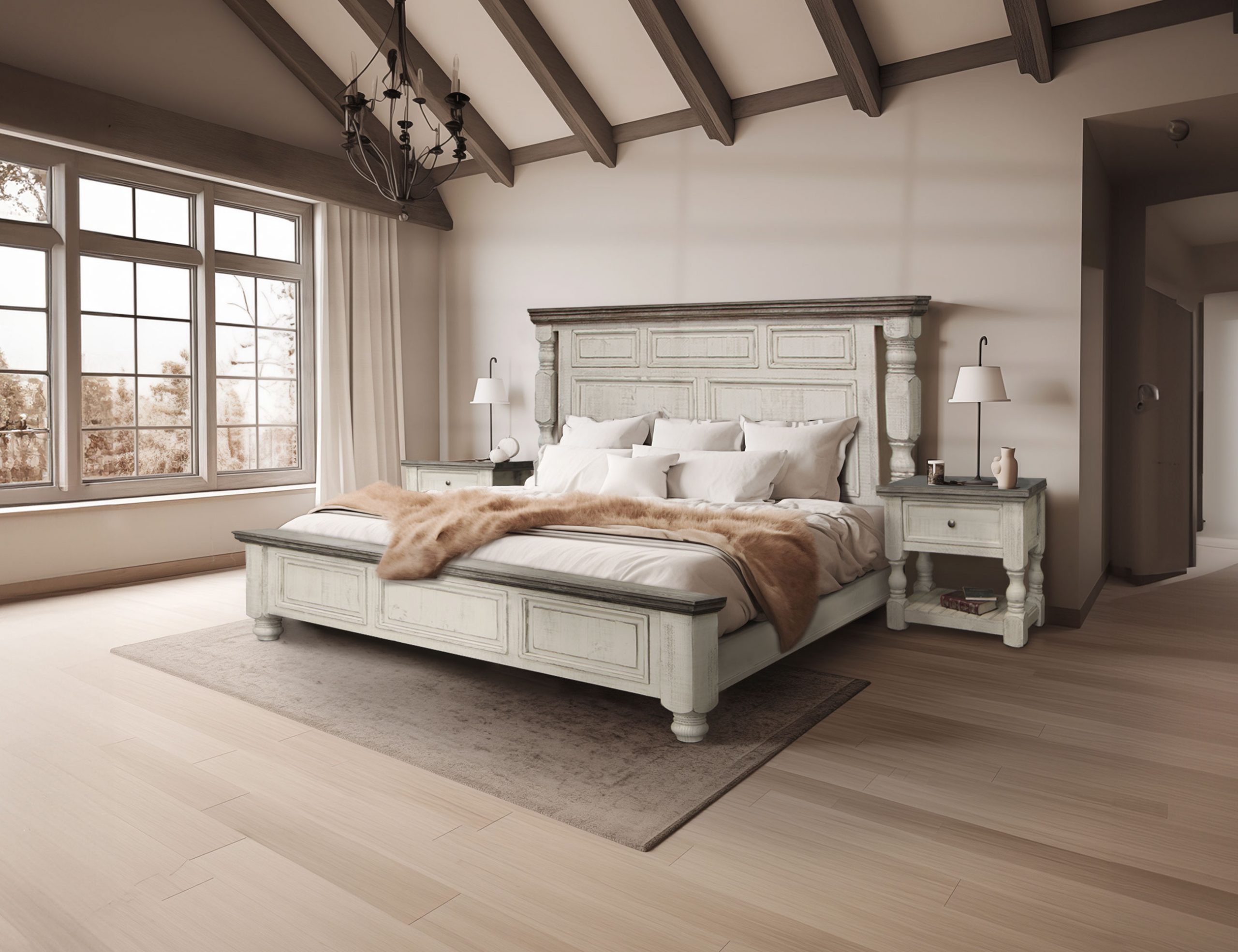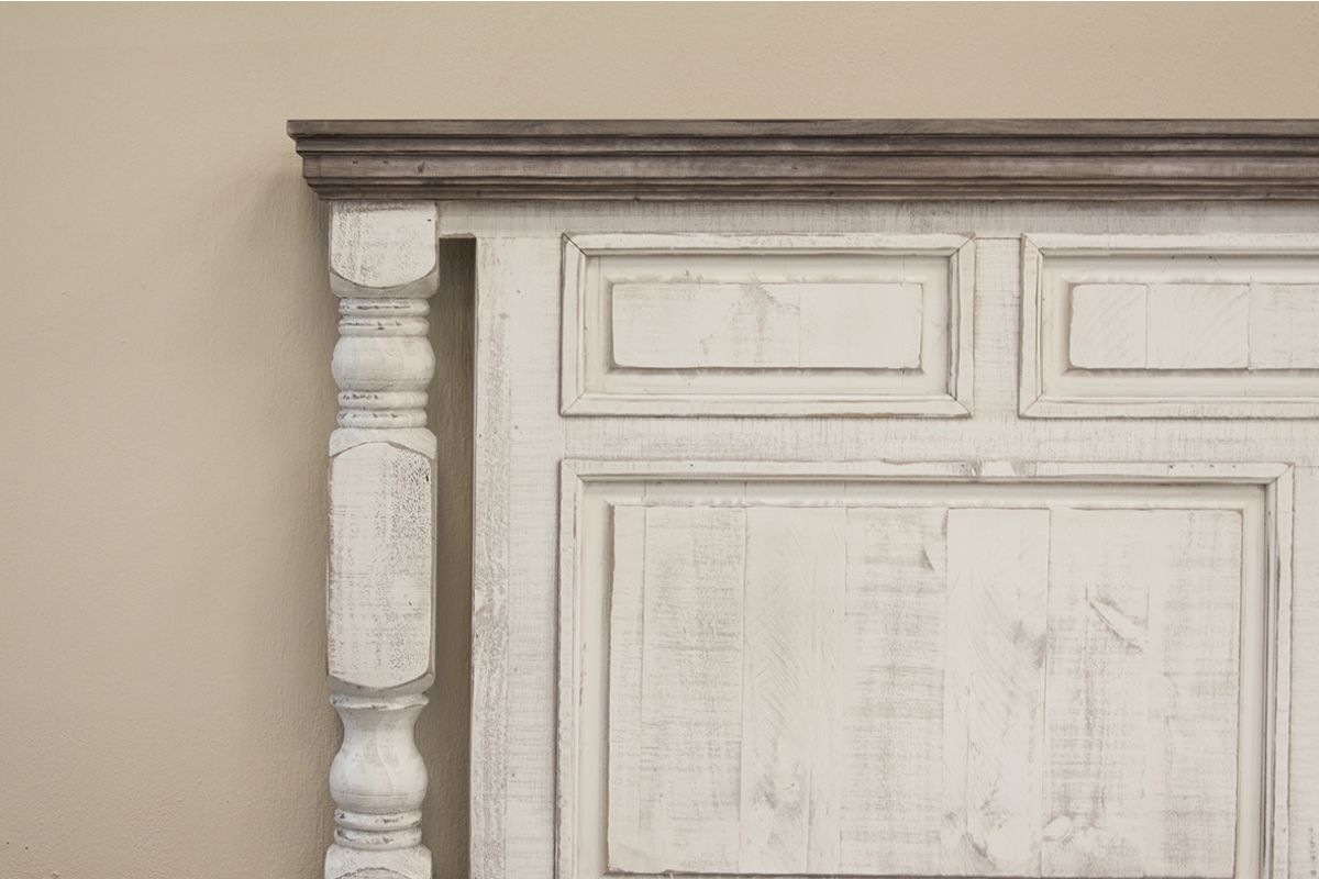 • Exuding farmhouse chic with just the right touch of old-world charm, the Stone Collection is meticulously crafted from solid pine wood. The wood is lightly distressed, showcasing a white finish and complemented by weathered gray tops.
