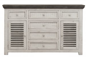 • Exuding farmhouse chic with just the right touch of old-world charm, the Stone Collection is meticulously crafted from solid pine wood. The wood is lightly distressed, showcasing a white finish and complemented by weathered gray tops.