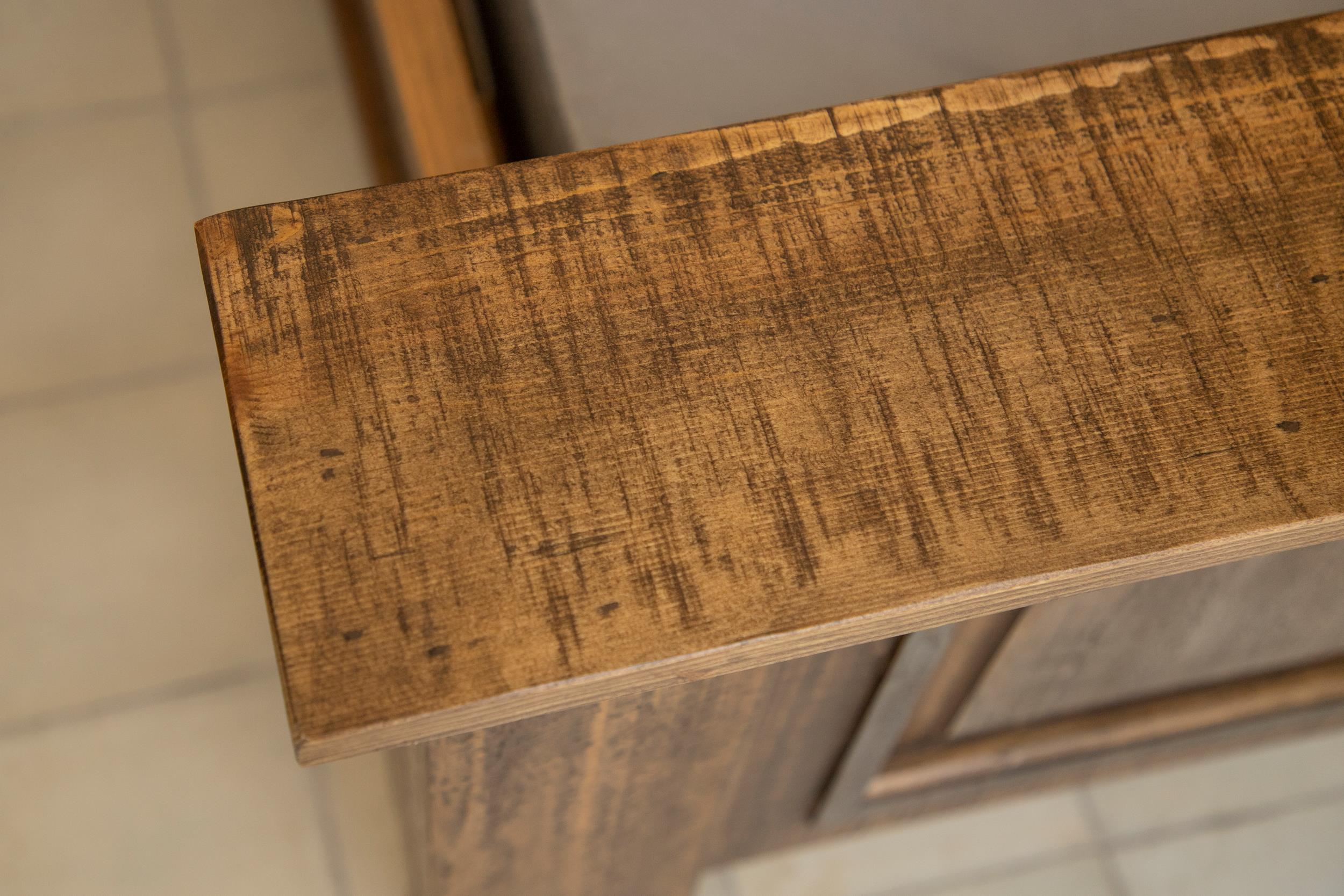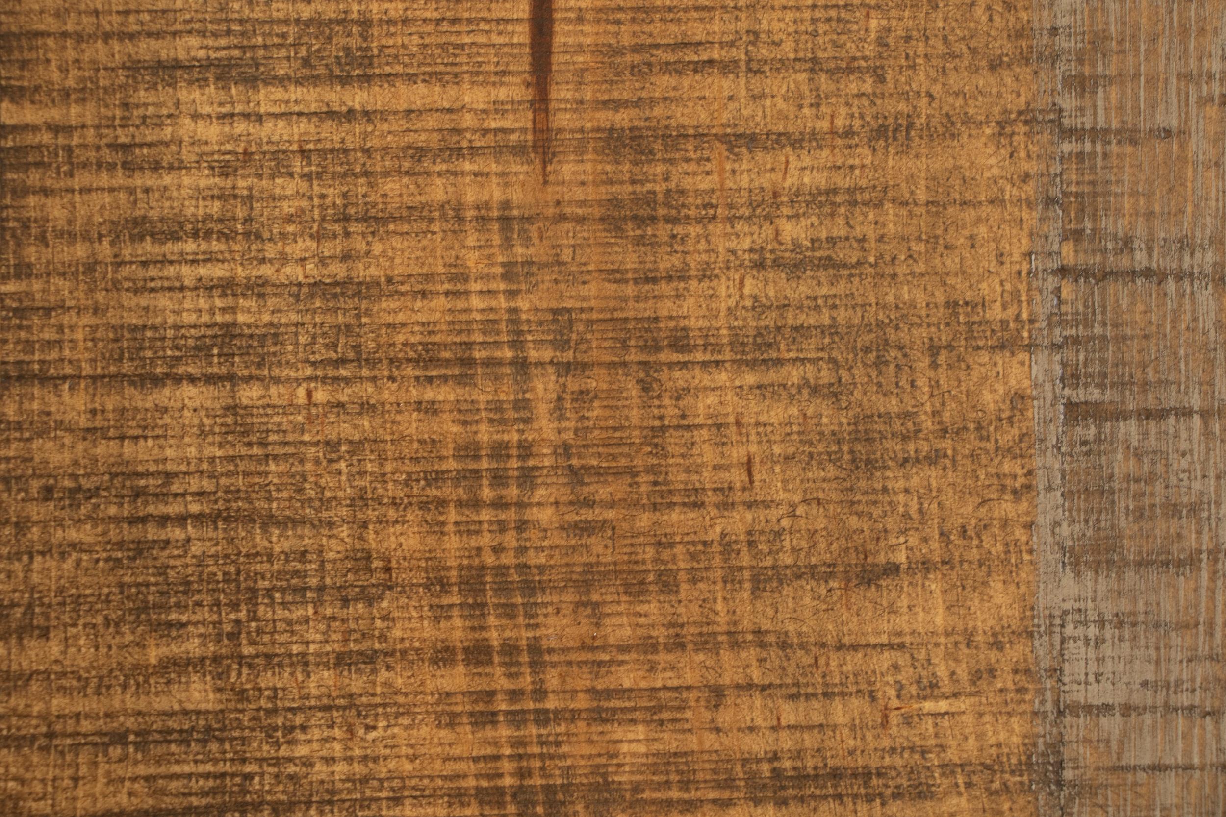 • Finish is achieved through a multi-step hand-painted process in gray and brown tones, resulting in a “reclaimed wood” look.