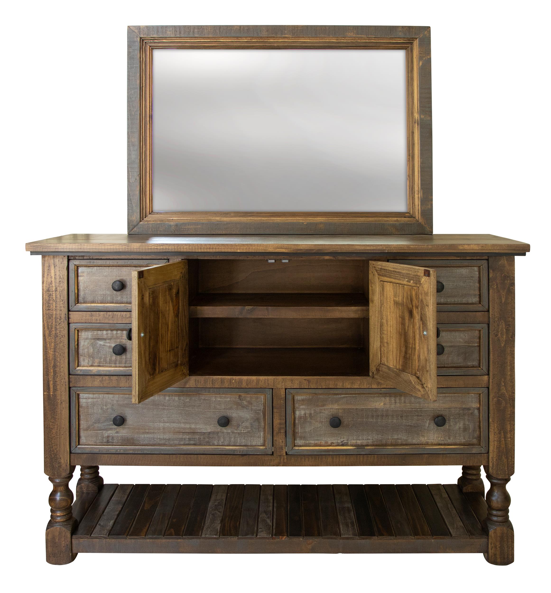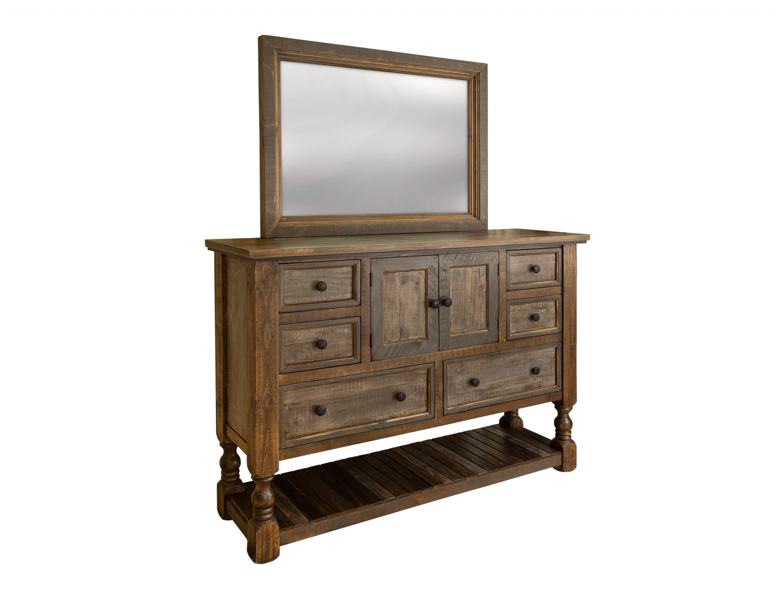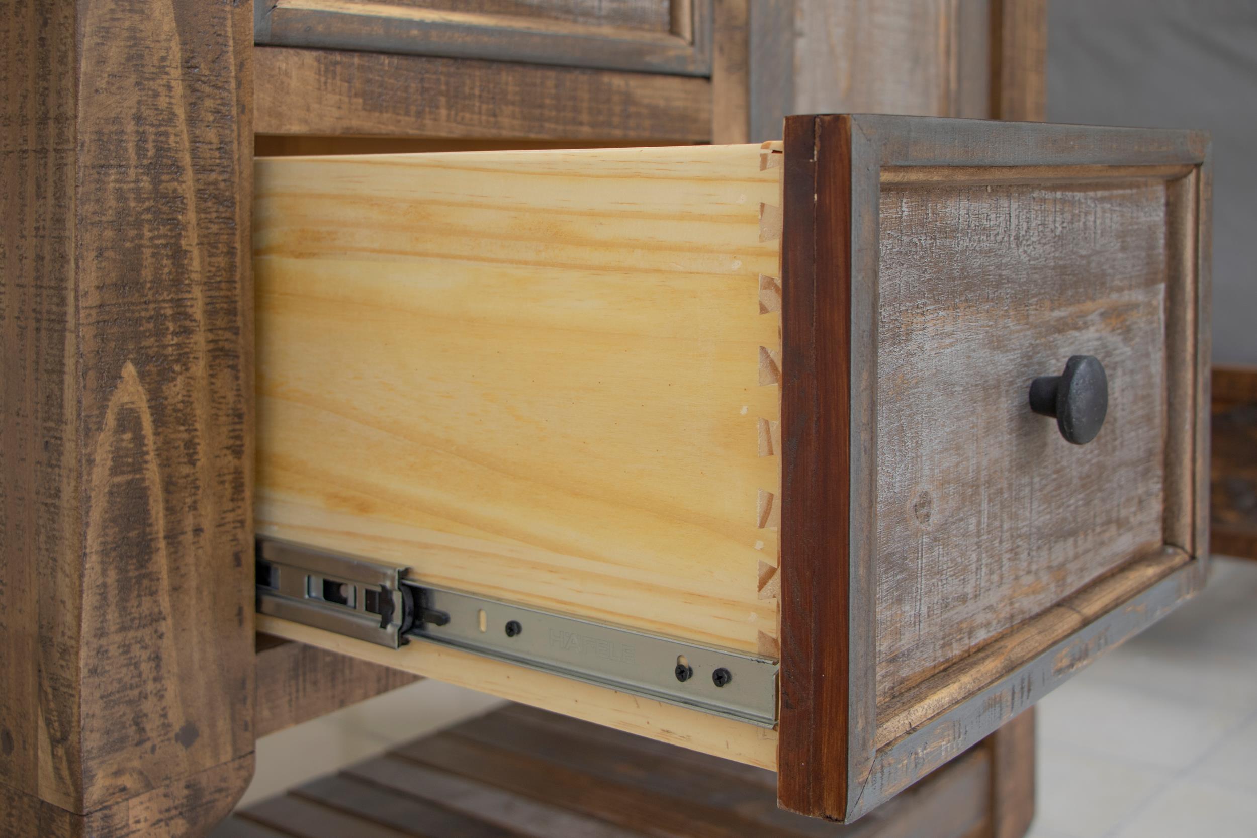 • Finish is achieved through a multi-step hand-painted process in gray and brown tones, resulting in a “reclaimed wood” look.