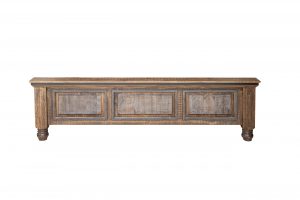 • Finish is achieved through a multi-step hand-painted process in gray and brown tones, resulting in a “reclaimed wood” look.