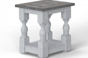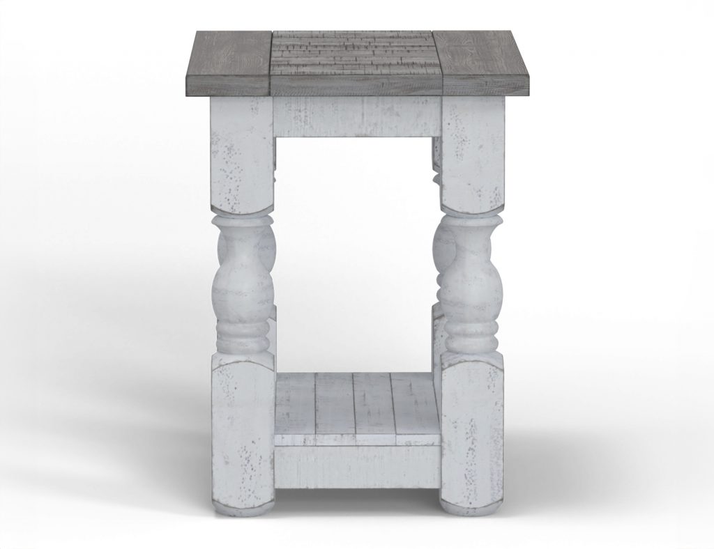 • Exuding farmhouse chic with just the right touch of old-world charm, the Stone Collection is meticulously crafted from solid pine wood. The wood is lightly distressed, showcasing a white finish and complemented by weathered gray tops.