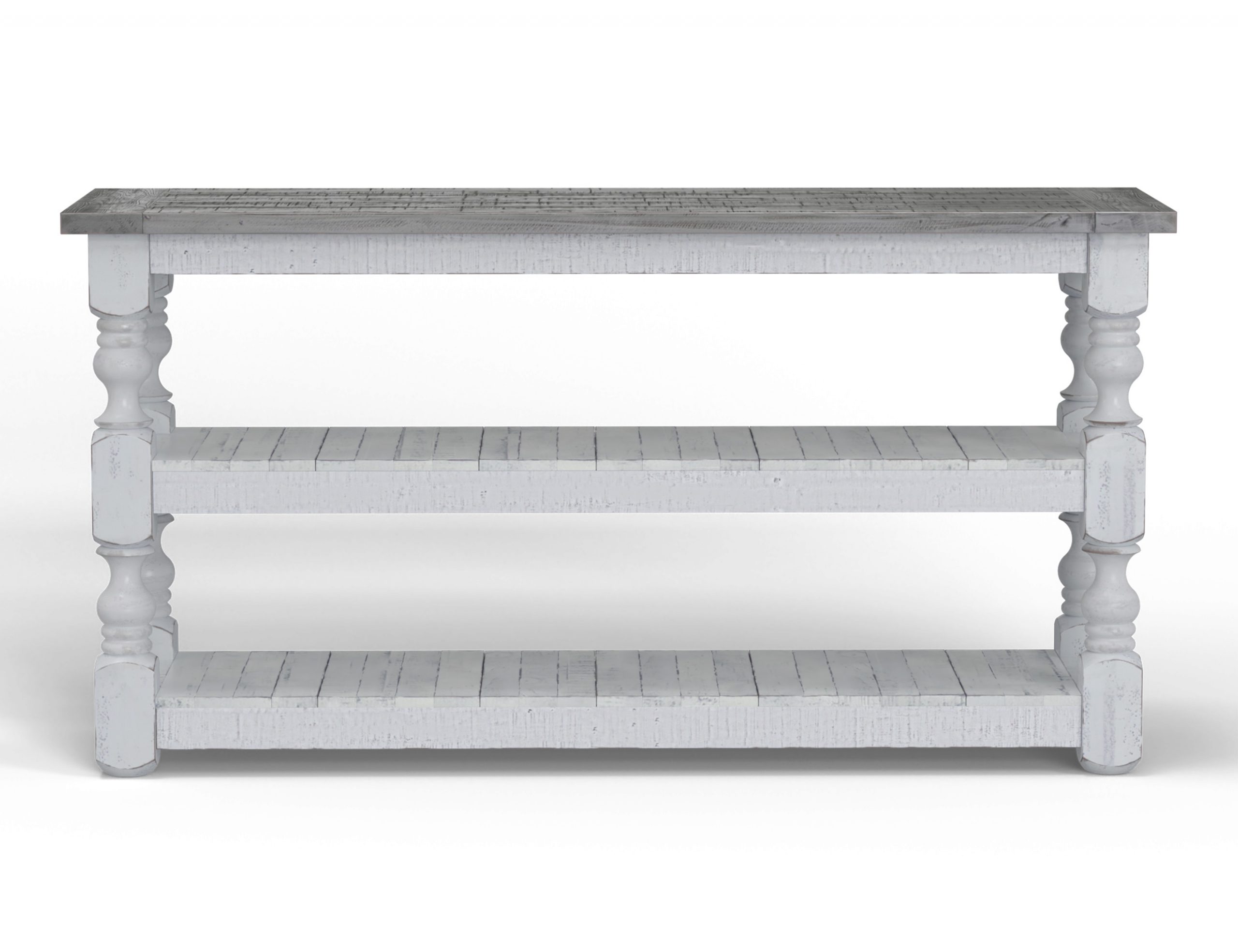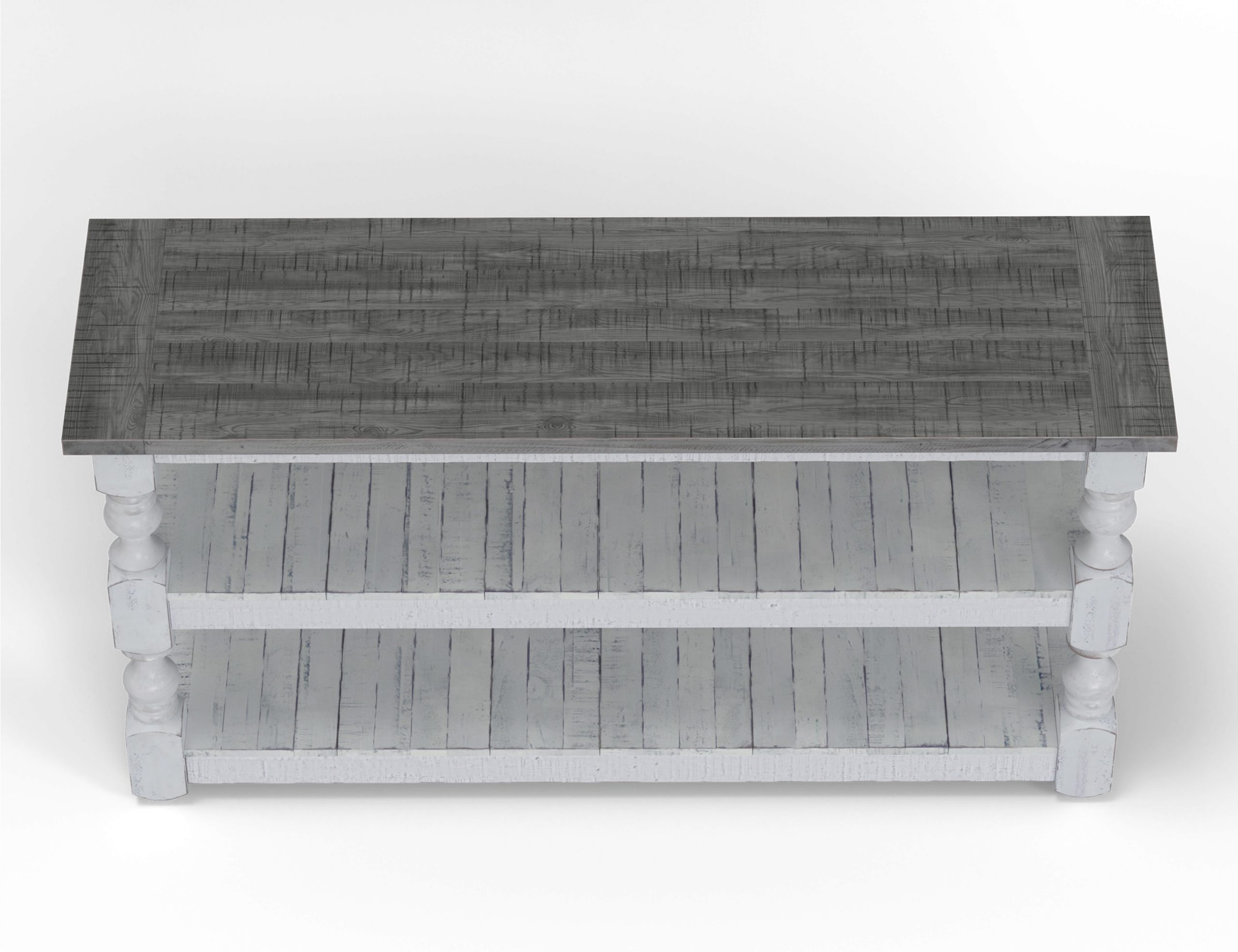 • Exuding farmhouse chic with just the right touch of old-world charm, the Stone Collection is meticulously crafted from solid pine wood. The wood is lightly distressed, showcasing a white finish and complemented by weathered gray tops.