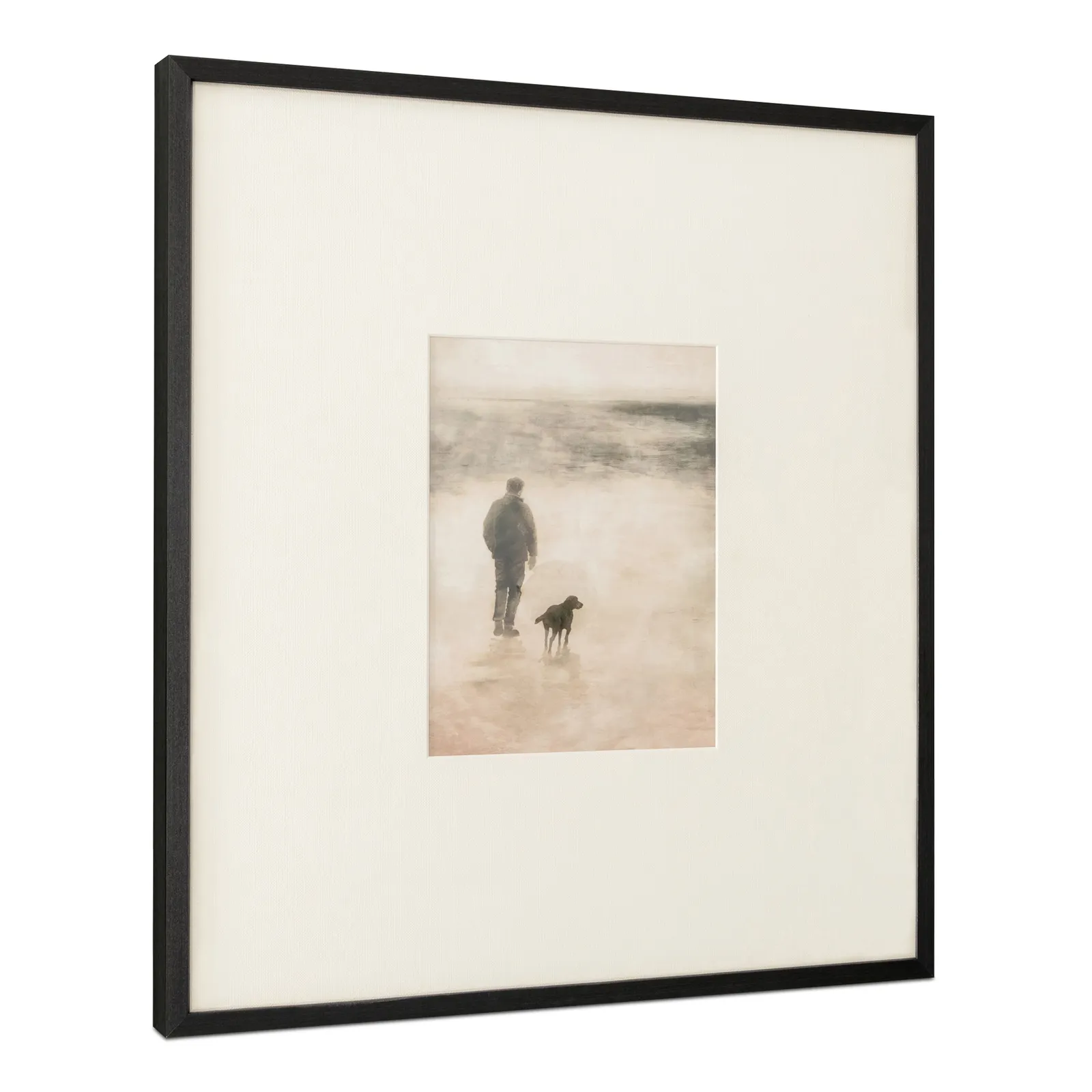 A poignant testament to companionship, the Strand 1 framed print evokes a portrayal of man and dog roaming freely along Ireland’s misty shores. The print’s earthy tones complement the solid wood frame and textured matte border. This piece is a daily reminder of life’s quiet, defining moments and the faithful companions who share them.