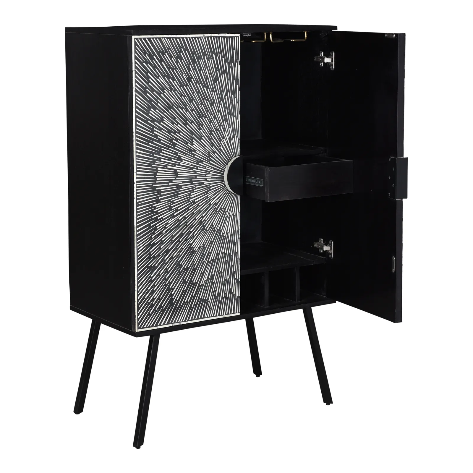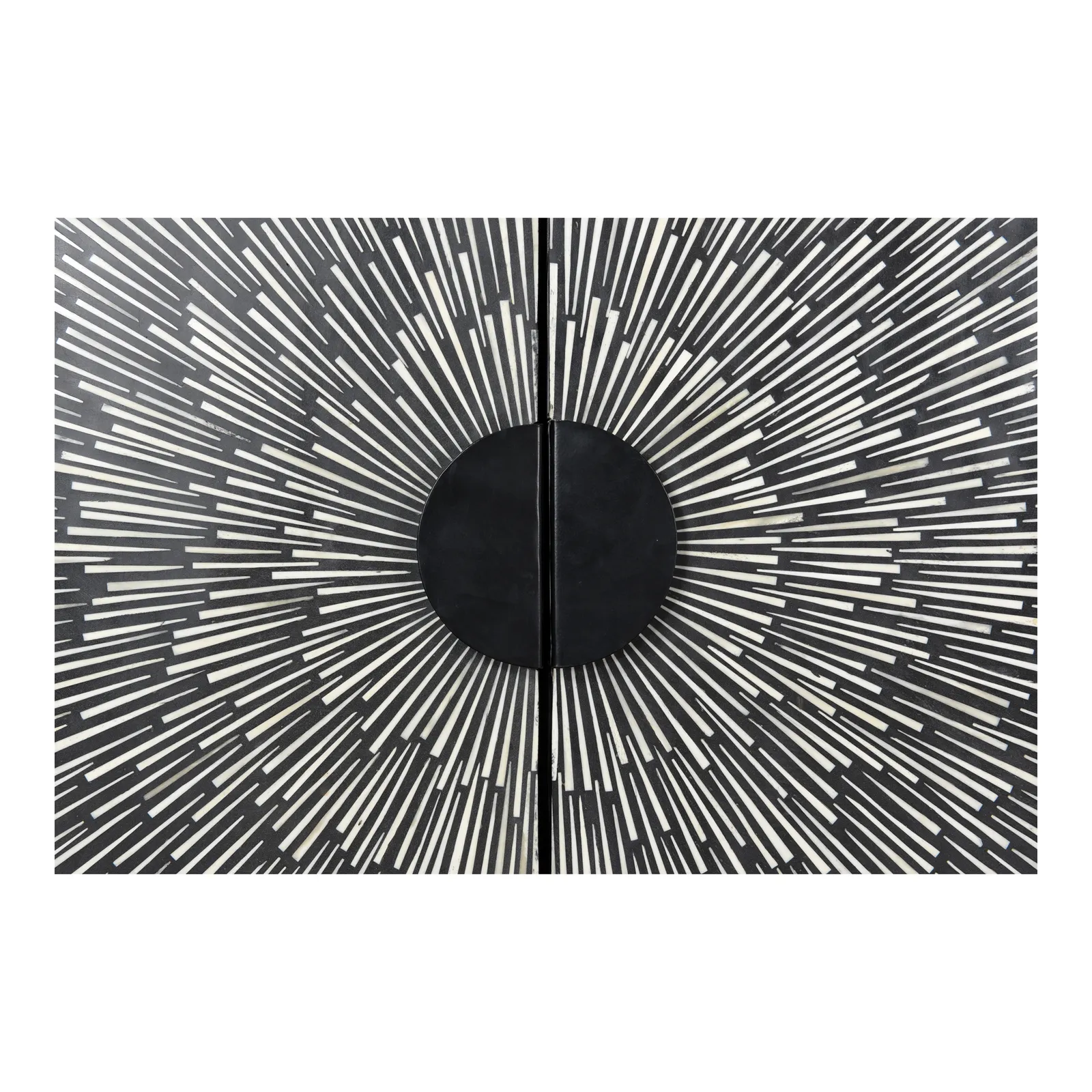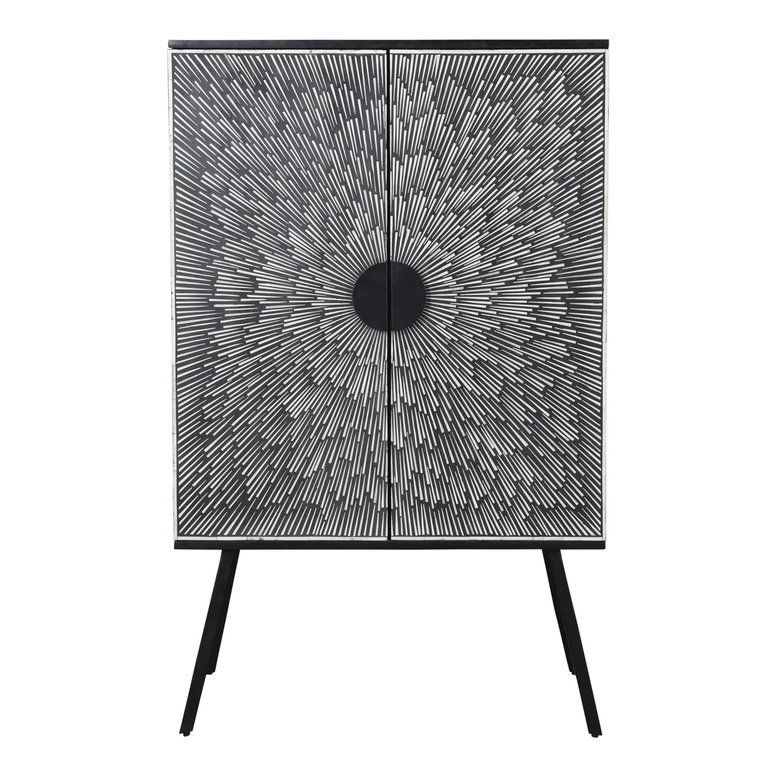 Shine on with the Sunburst wine cabinet. This black-and-white camel bone and resin affair will leave you starstruck every time you reach for a bottle. Two wide swinging doors leave plenty of space for your wine collection.