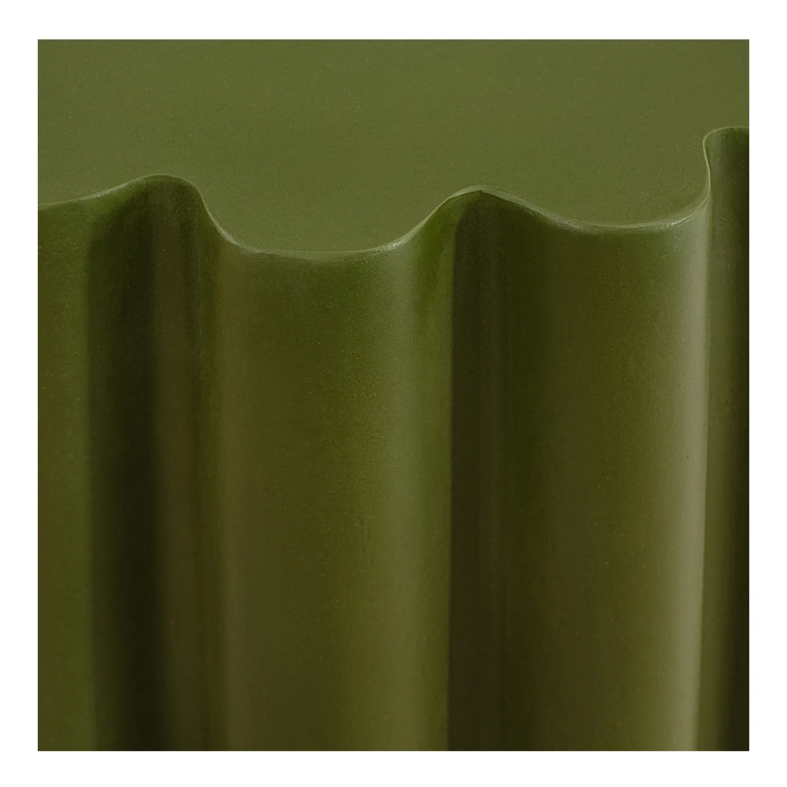 Suitable for indoor or outdoor use, the Taffy accent table’s rounded ridges perfectly complement its cylindrical silhouette. Ready to serve as a stool or accent table, its sturdy fiber-reinforced concrete construction makes it a perfect go-between for occasional patio seating or an ad-hoc indoor perch.