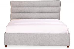 - Soft, polyester upholstery with foam padded, channeled headboard. Subtle wooden, cylinder shaped legs