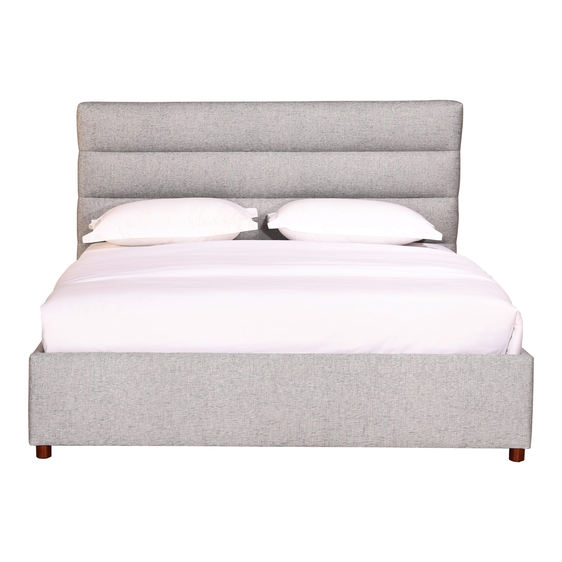 Modern and minimal. The Takio bed is softly upholstered in light grey polyester fabric for a soothing feel before you drift off to dreamland. Lightly stuffed and tufted on top of a solid wood construction for ultimate comfort.