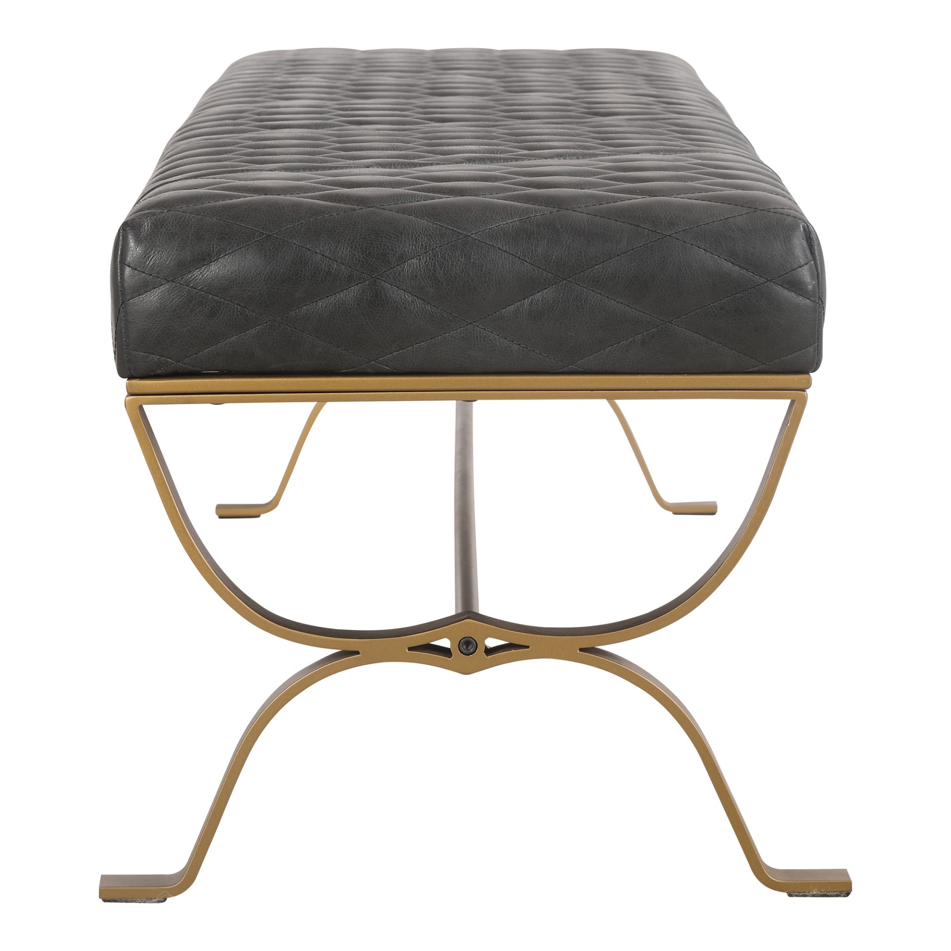 An antique style bench fit for the finest theatre. The Teatro bench presents smooth top-grain leather, foam filled seats, and matte iron legs for an elevated look. This bench quilted style makes a great impression of your contemporary modern home.