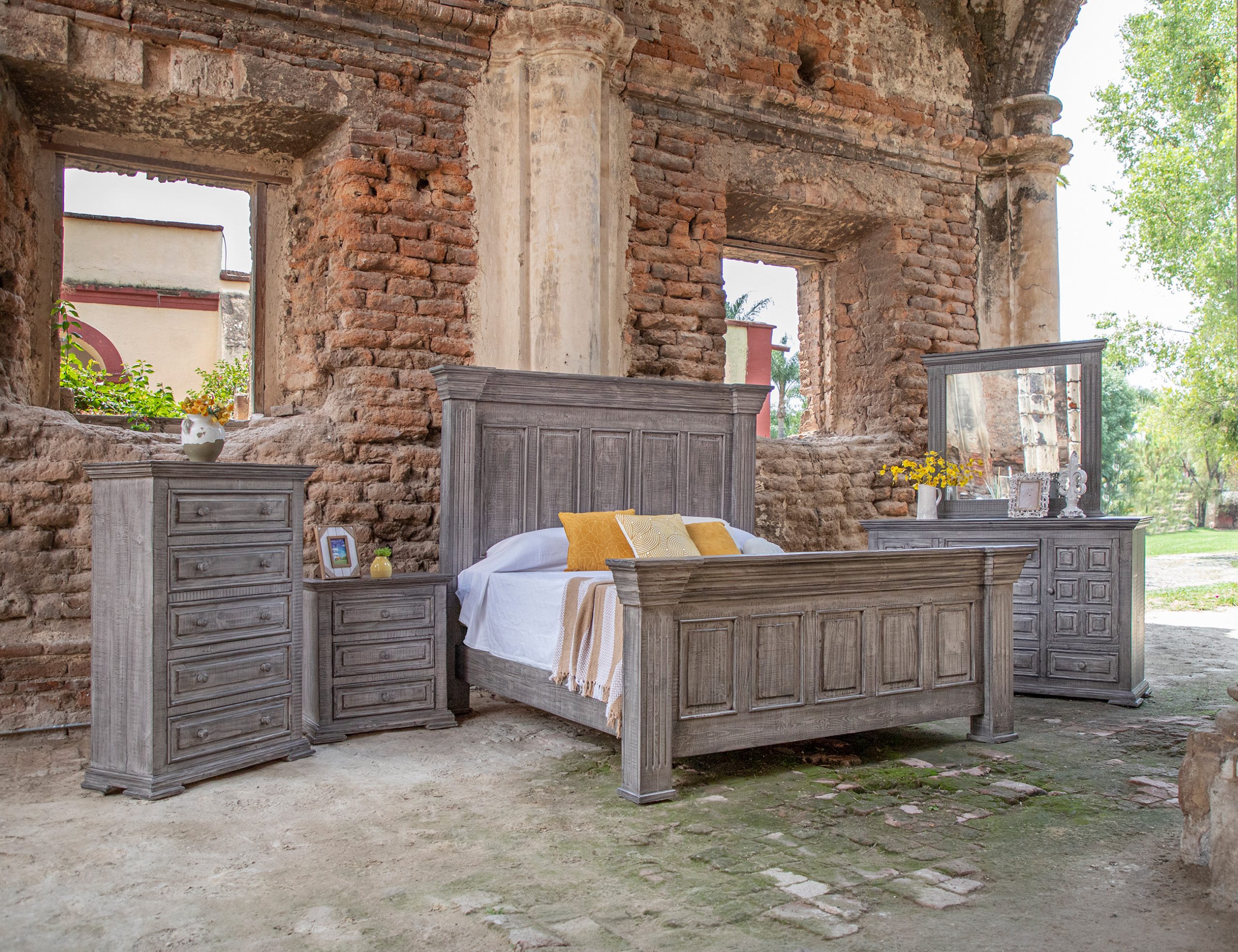 • Drawing inspiration from transitional design, the Terra Gray collection embodies the effortless elegance of its clean, sturdy shapes and the charming rustic grain of solid pine wood. With a tasteful gray finish, this collection represents a harmonious fusion of modern and traditional elements, making it a timeless addition to your home.