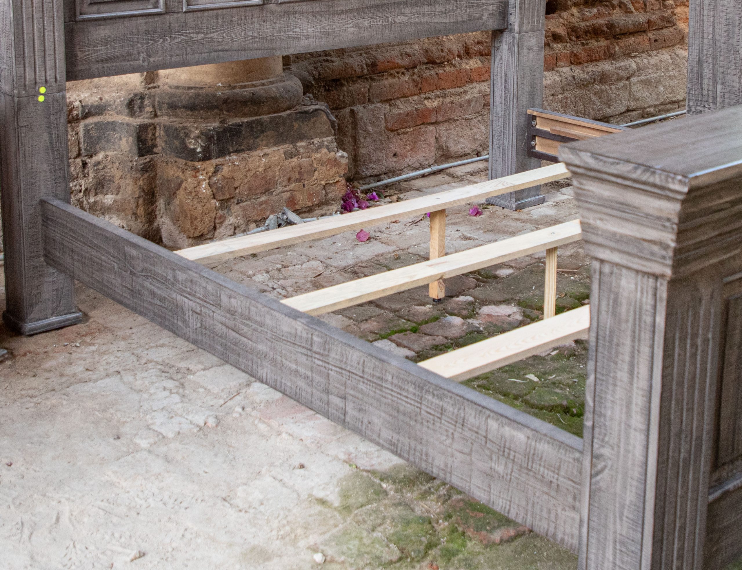 • Finish is achieved through a multi-step lacquer in a gray distressed tone.