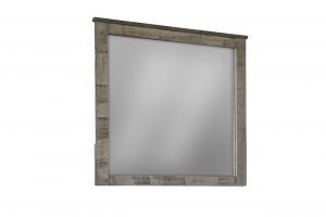 • The finish is achieved through wire-brushed wood and a multi-step lacquer process in a charred log tone with light brown tops.