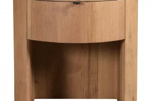 Curved and functional—just how we like it. The Theo One Drawer Nightstand features a clean, rounded silhouette in solid oak with a semi-gloss natural finish that highlights the wood’s lighter grain and tone. Its minimalist form brings soft geometry to modern bedrooms, while natural variation in the oak makes each piece one of a kind. A single felt-lined drawer opens on soft-close glides and includes a discreet metal pull-tab. Streamlined, sculptural, and made for everyday function.