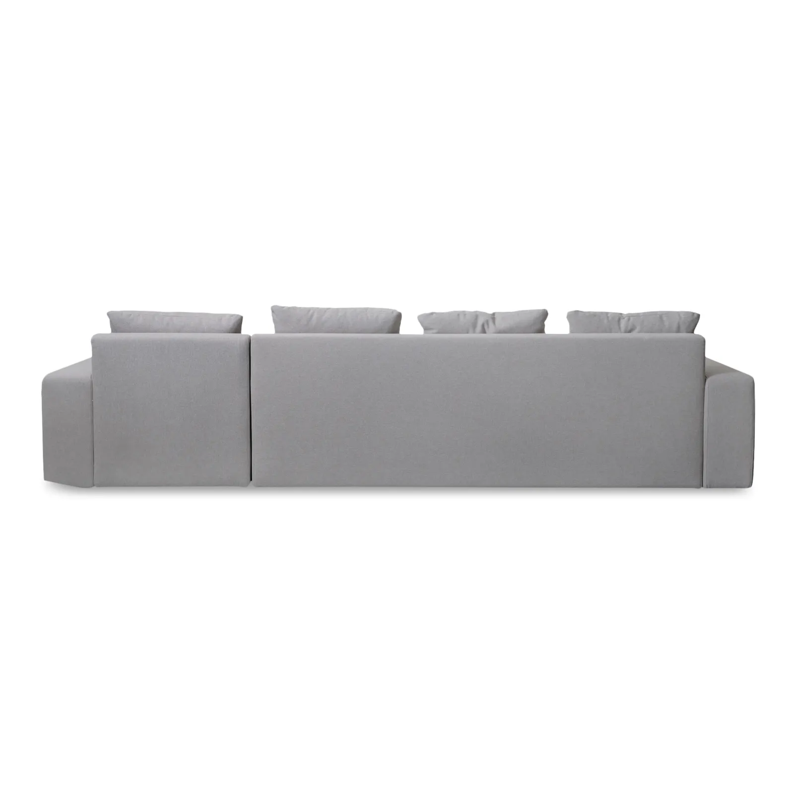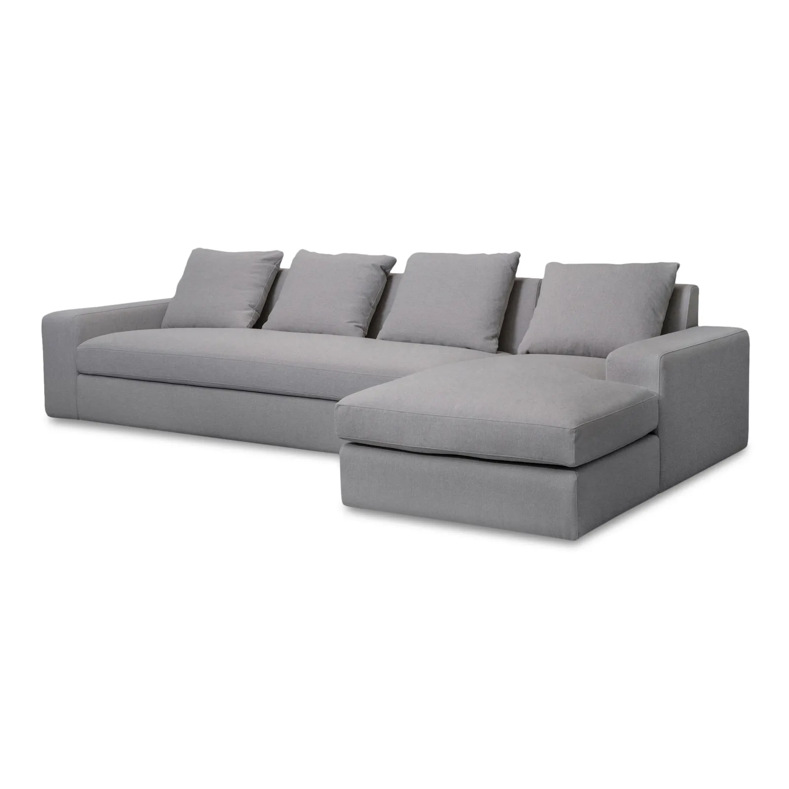The Thomas sectional offers an expansive 125 inches of seating in durable C0 100% polyester fabric. An oversized structure, wide track arm, and bench-style seat topped with a 70% feather blend ensure even comfort. Featuring removable back cushions and even channeling within the seat to ensure its feathers stay evenly distributed, it is perfect for family living.