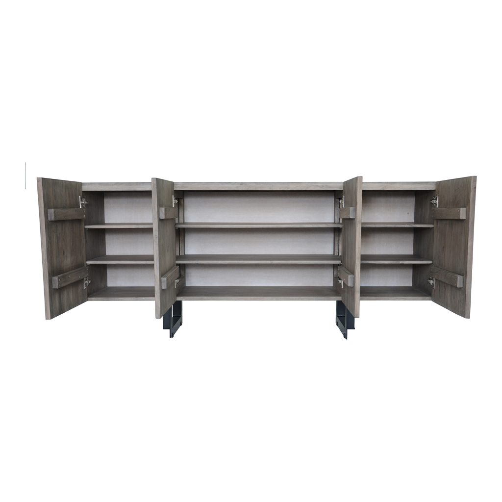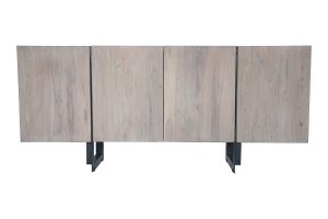 A contemporary, industrial sideboard with a pale-grey finish. Tons of storage to help keep your dining or living room neat and tidy. Crafted from solid wood and black, powder-coated iron for top-notch quality.