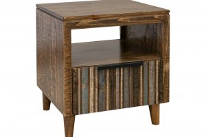 • Lightly distressed wood with a black multi-step lacquer finish.