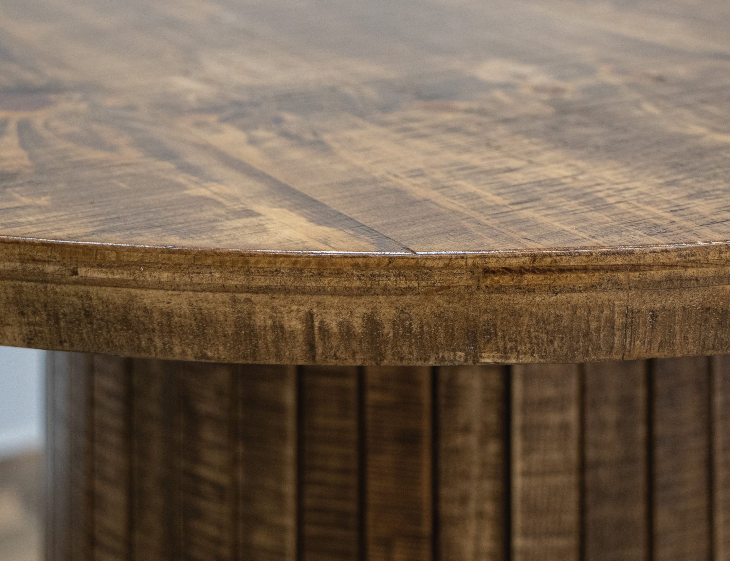 • Multi-step lacquer in a soft hand-distressed finish with brown highlights.