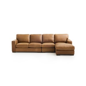 A customizable sectional with sink-in soft Italian leather upholstery and a classic squarearmed style.