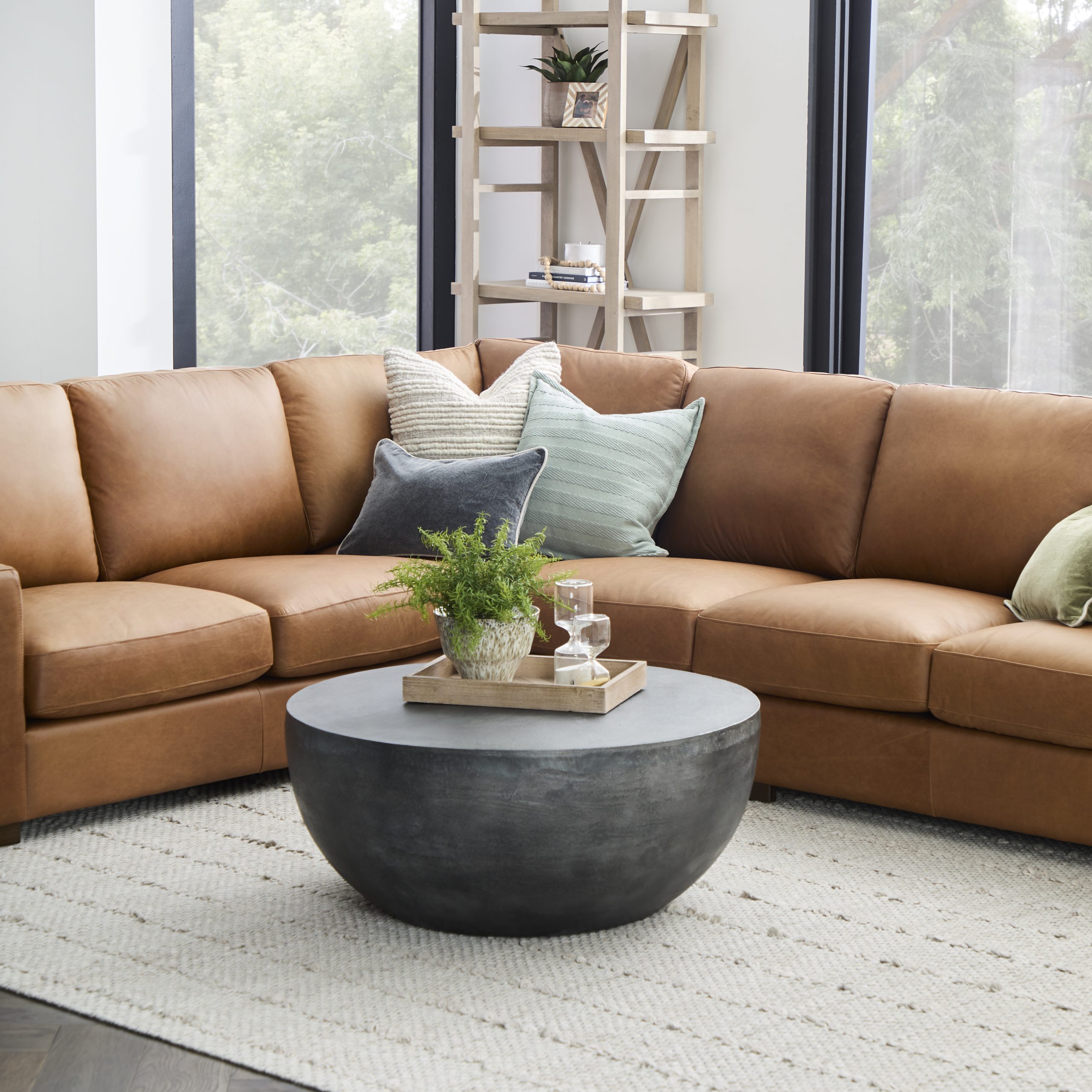 A customizable sectional with sink-in soft Italian leather upholstery and a classic squarearmed style.