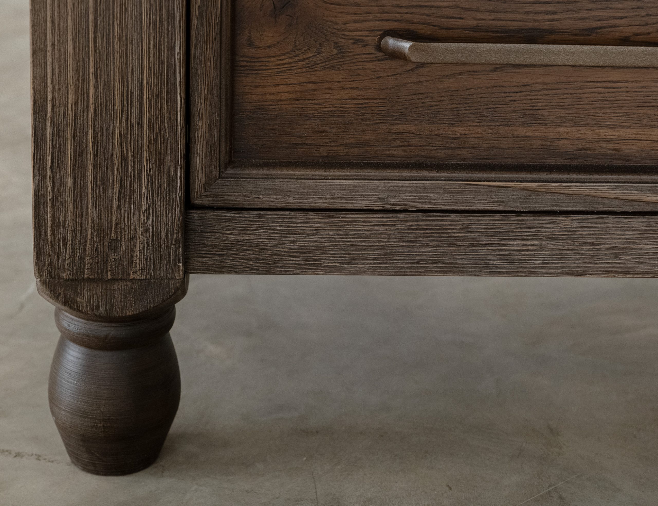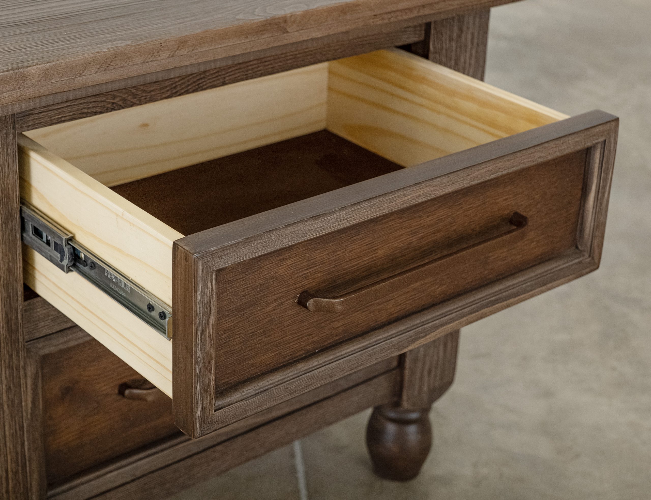 • English dovetail on 100% solid wood drawer fronts. Wooden slides.