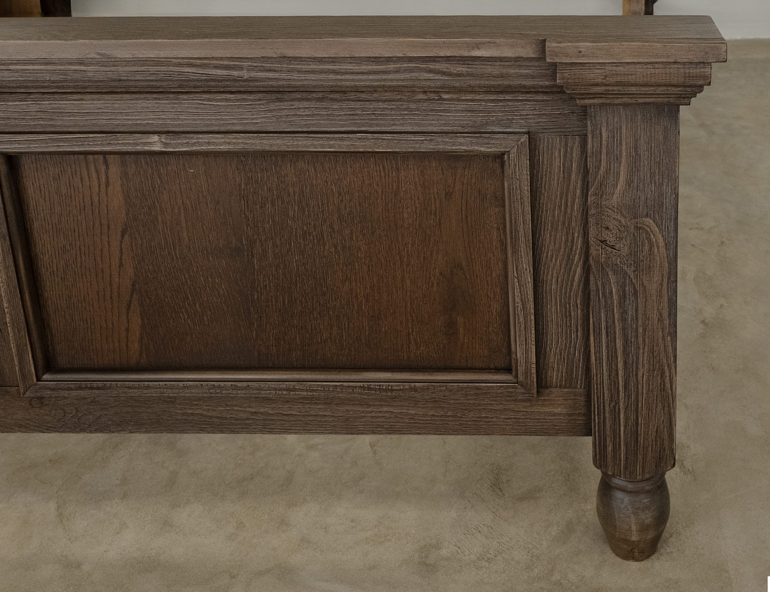 • Lightly distressed wood with a brown multi-step lacquer finish.