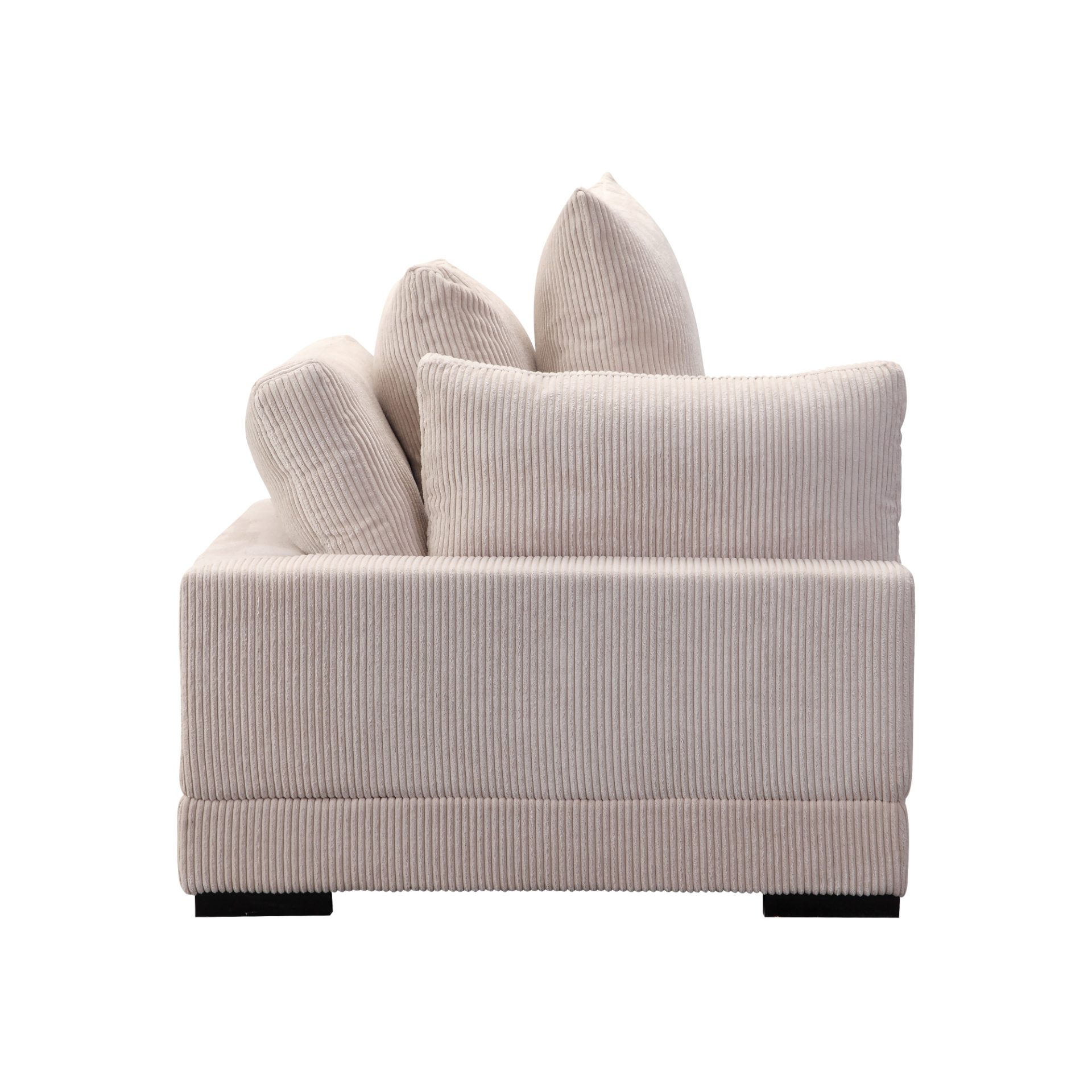 Seriously comfortable, seriously stylish. Either at home or in your commercial space, you can get cozier & cushier using furniture that encourages the softer moments of calm and focus – just like Tumble’s mix and match modular pieces. Tumble’s corduroy naturally softens the sharp edges and hard lines of other contemporary accents like coffee and end tables with its inherent plushness. An ideal corner chair framed in solid eucalyptus wood with extra, fully down-filled, removable back cushions. This occasional chair’s soft corduroy will immediately add dimension, intrigue, lift, and comfort to any environment.