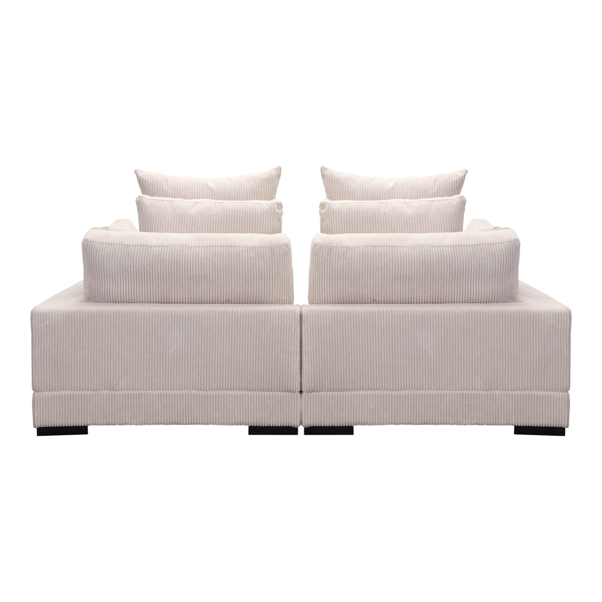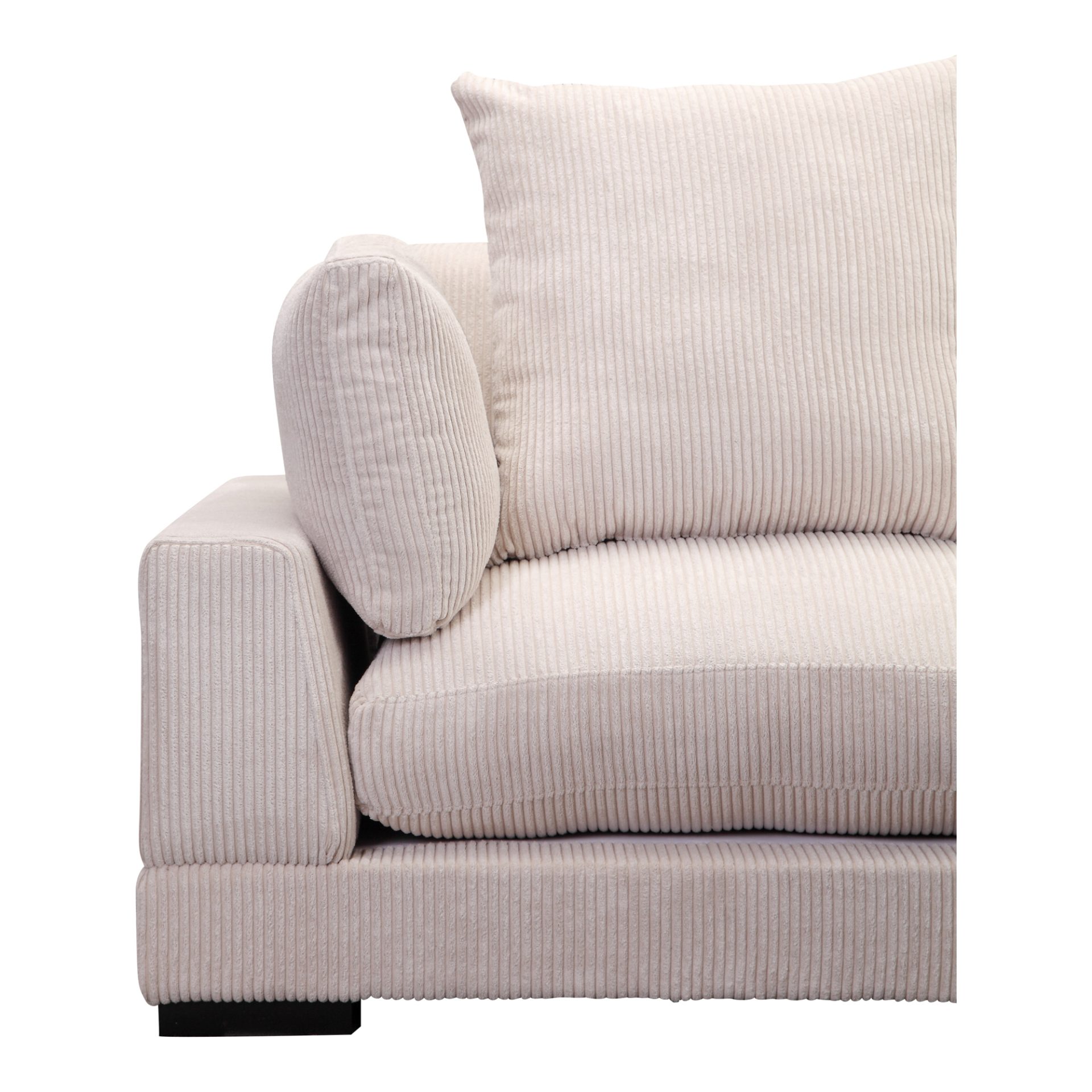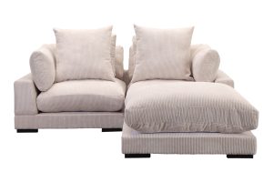 Seriously comfortable, seriously stylish. Either at home or in your commercial space, you can get cozier & cushier using furniture that encourages the softer moments of calm and focus – just like Tumble’s mix and match modular pieces. Tumble’s corduroy naturally softens the sharp edges and hard lines of other accents like coffee and end tables with its inherent plushness. Framed in solid eucalyptus wood with extra, fully down-filled, removable back cushions, the Tumble Nook is an ideal modular dream. This sectional’s soft corduroy will immediately add dimension, intrigue, lift, and comfort to any environment.
