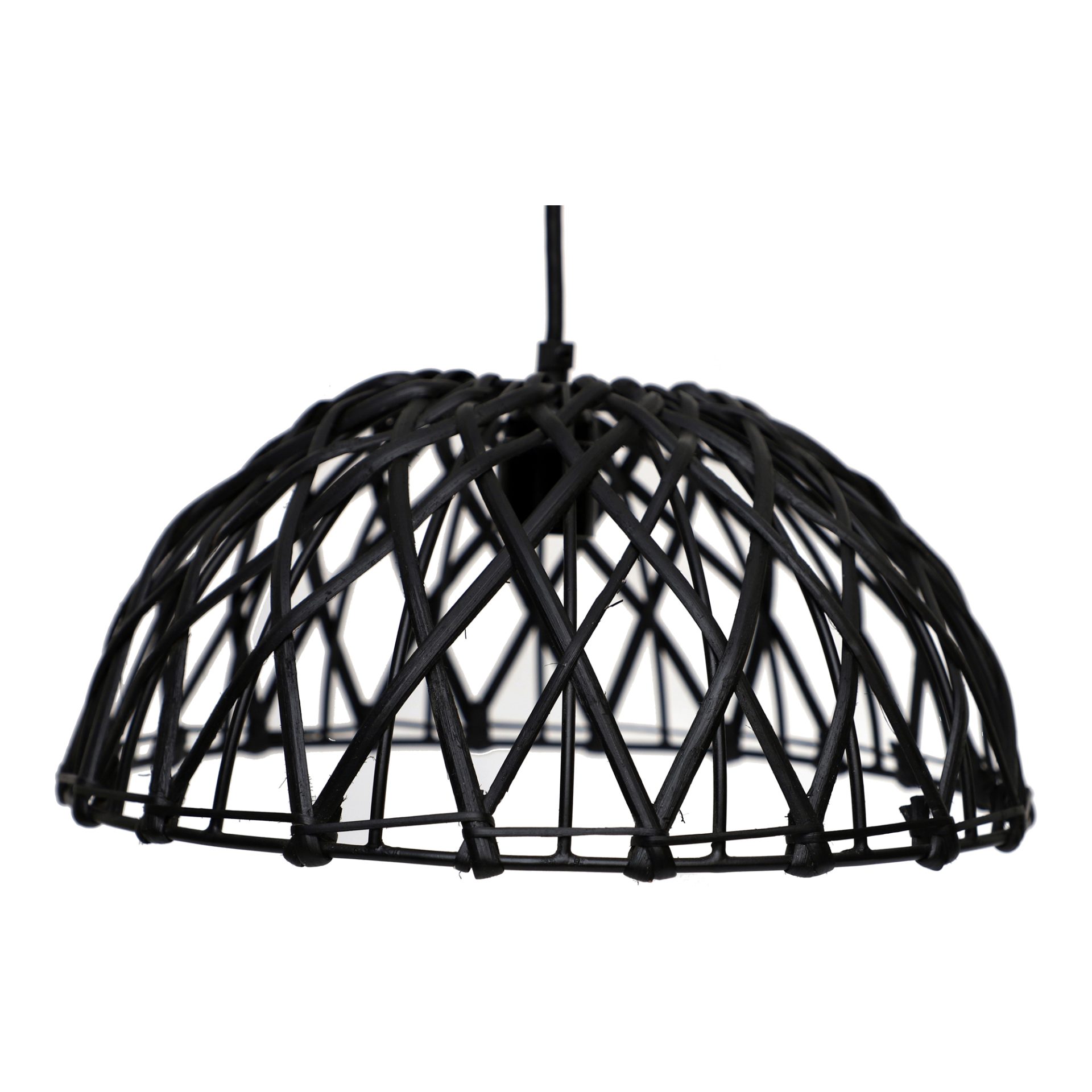 Rattan shade on a metal frame.