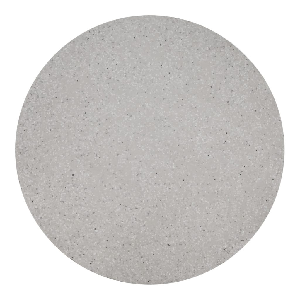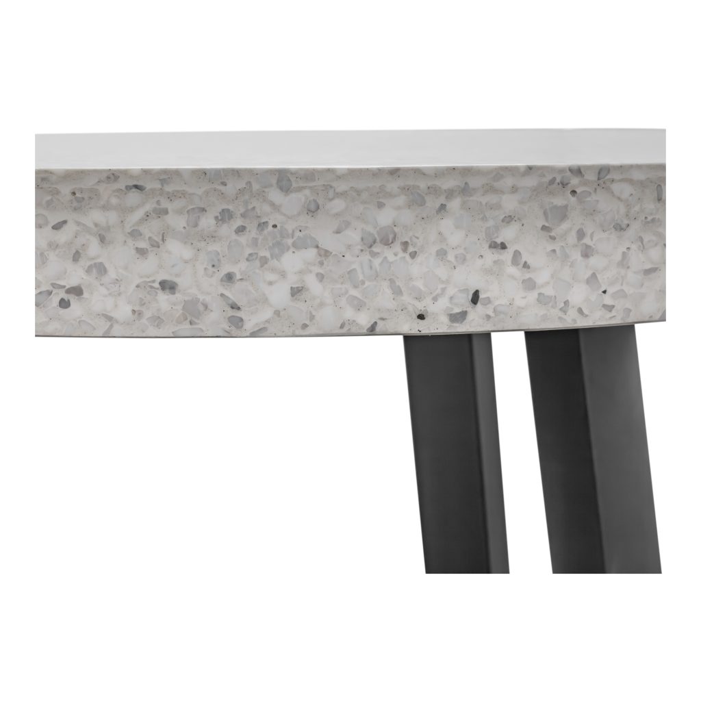 The Vault Dining Table is a solid addition to your modern dining room. This dining table features white, lightweight terrazzo on top of an iron base. The round shape of the table allows for easy flow in your living space.