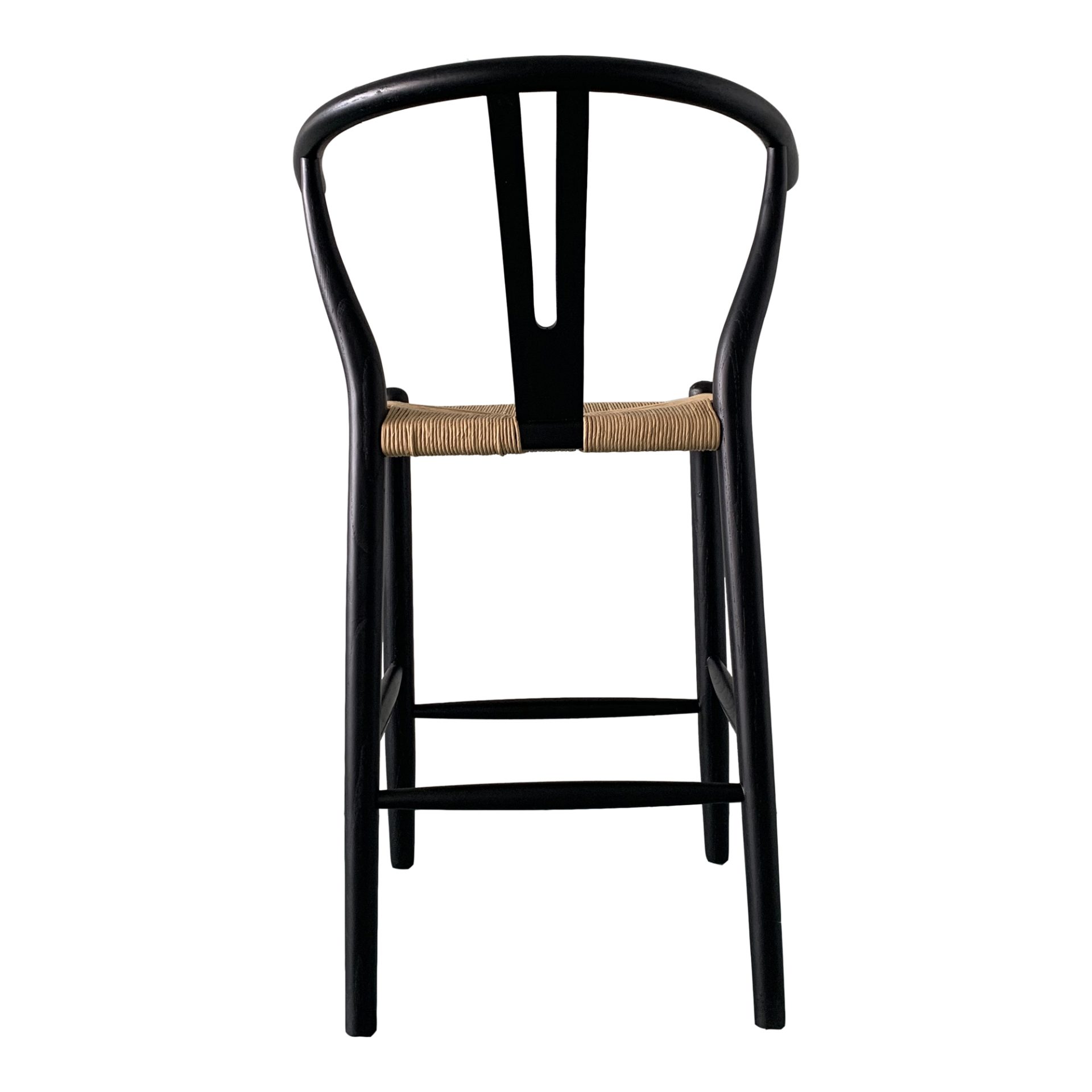 The Ventana counter stool flaunts sweet juxtaposition with its simple, sturdy construction, contemporary woven paper fiber seat, and convenient wrap around footrest. Dressed in natural elements, these designs are simple but with idiosyncrasies all of their own. Fitting for bar or counter-height, this stylish stool’s frame is composed of solid elm wood with a black, semi-gloss finish, while its fiber seat is stunning in a natural color scheme. The Ventana design comes in various heights and shapes to better suit your home needs.