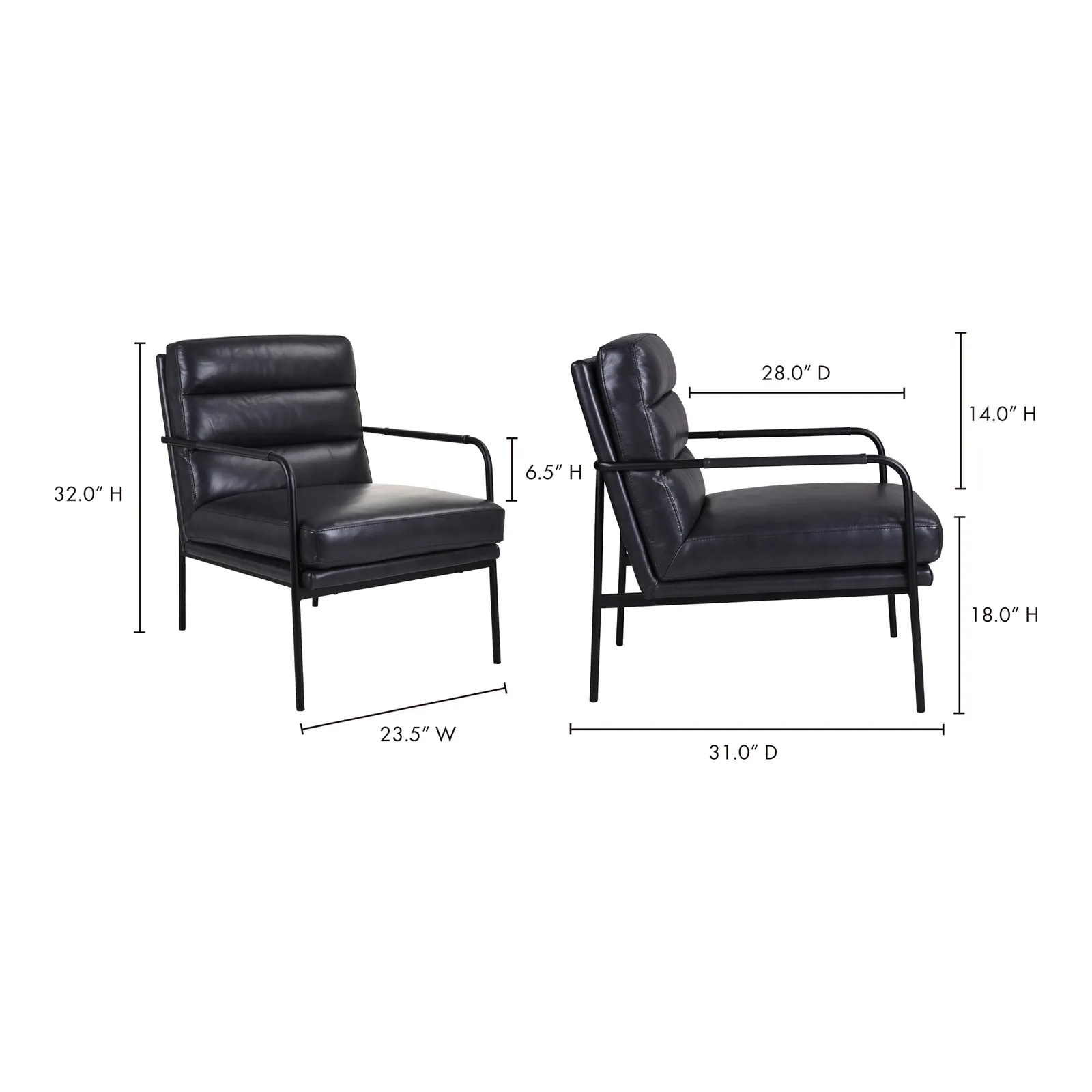 An old-school armchair with a modern edge – the Verlaine armchair. Upholstered in a top-grain, raven black leather that’s sure to mellow with age and patina beautifully, its back support cushion is perfectly padded with gentle channeling, while Verlaine’s seat is supported with foam and zigzag springs. Offering rich relaxation, Verlaine’s slim, powder-coated metal frame features slender arms wrapped with leather, a timeless, authentic style to work in any setting.