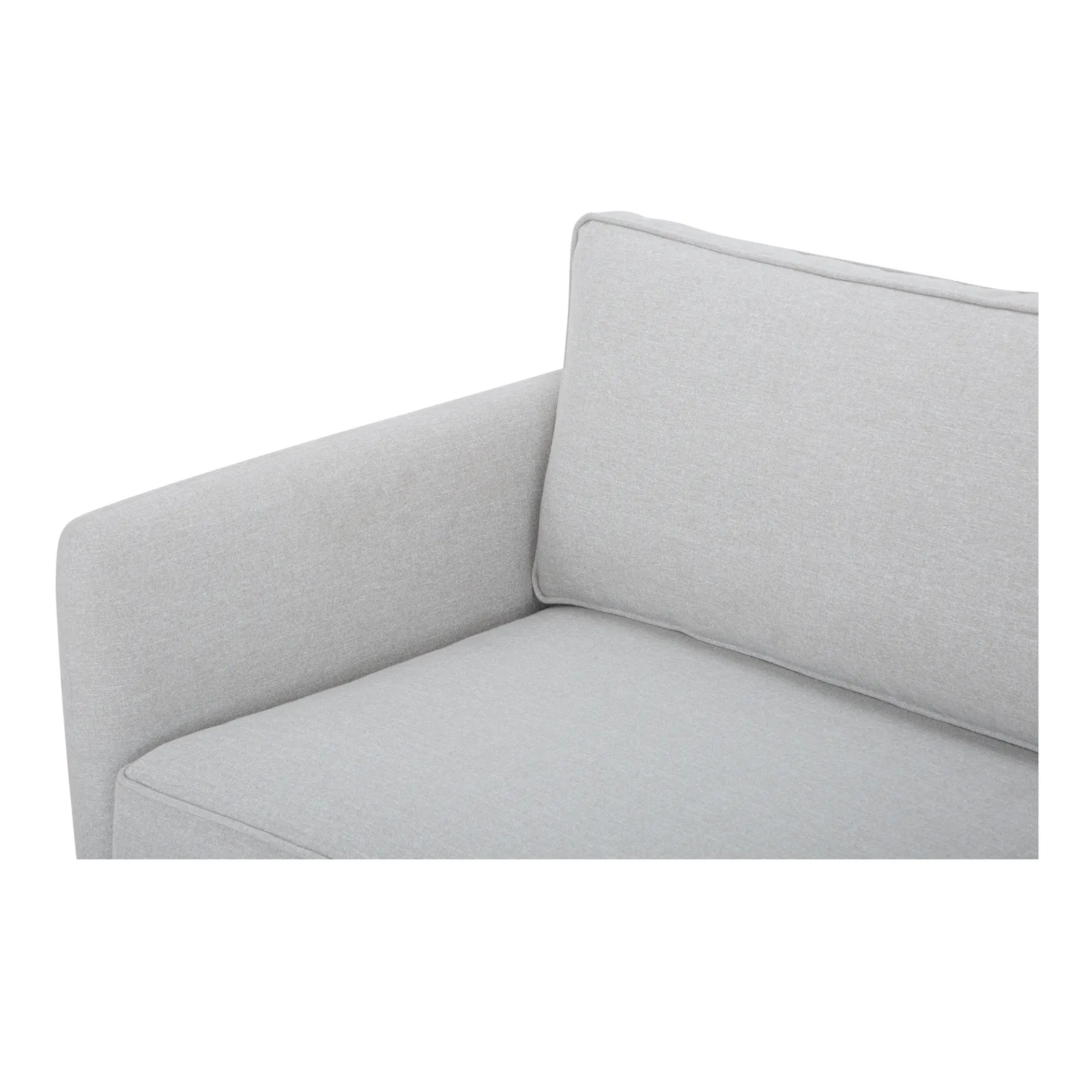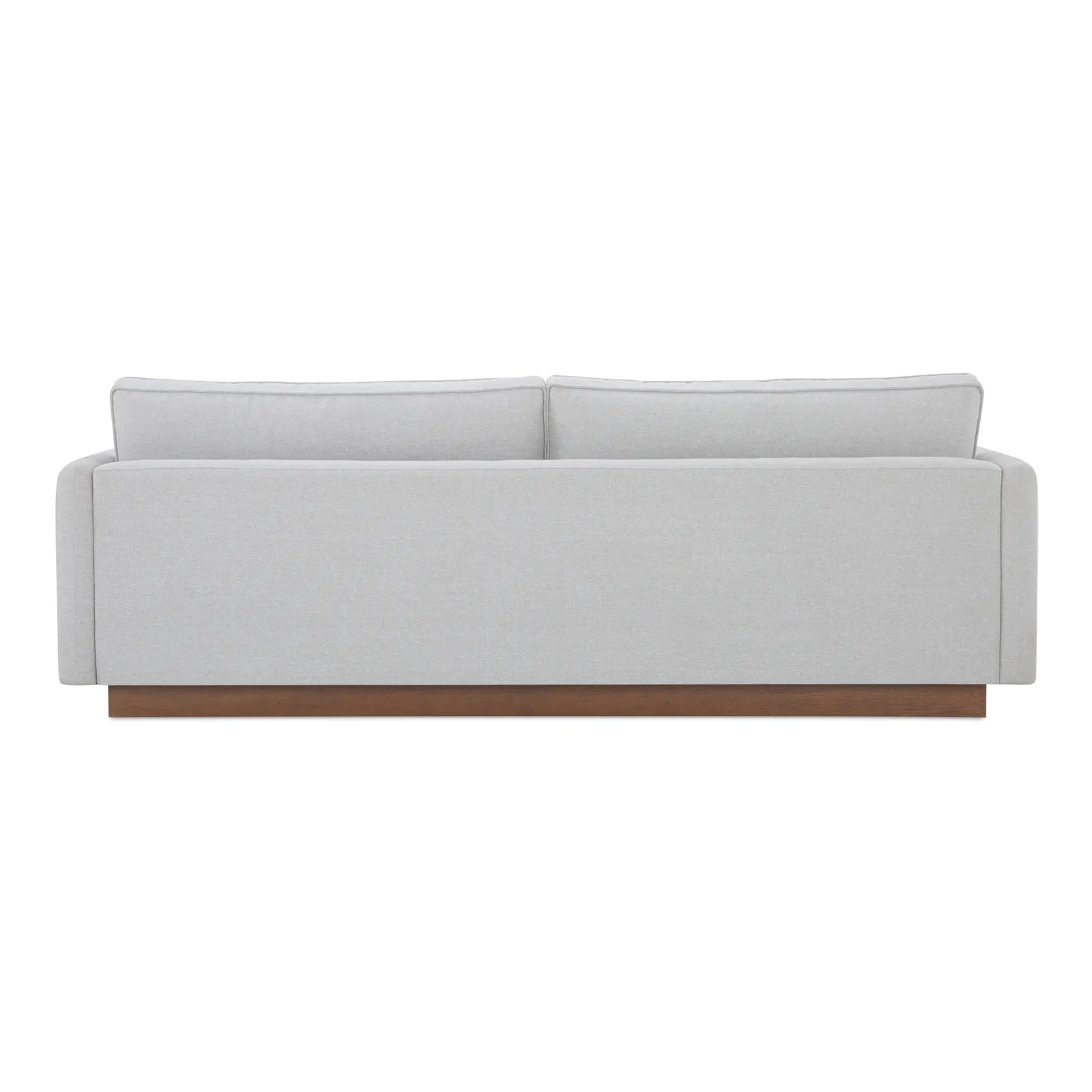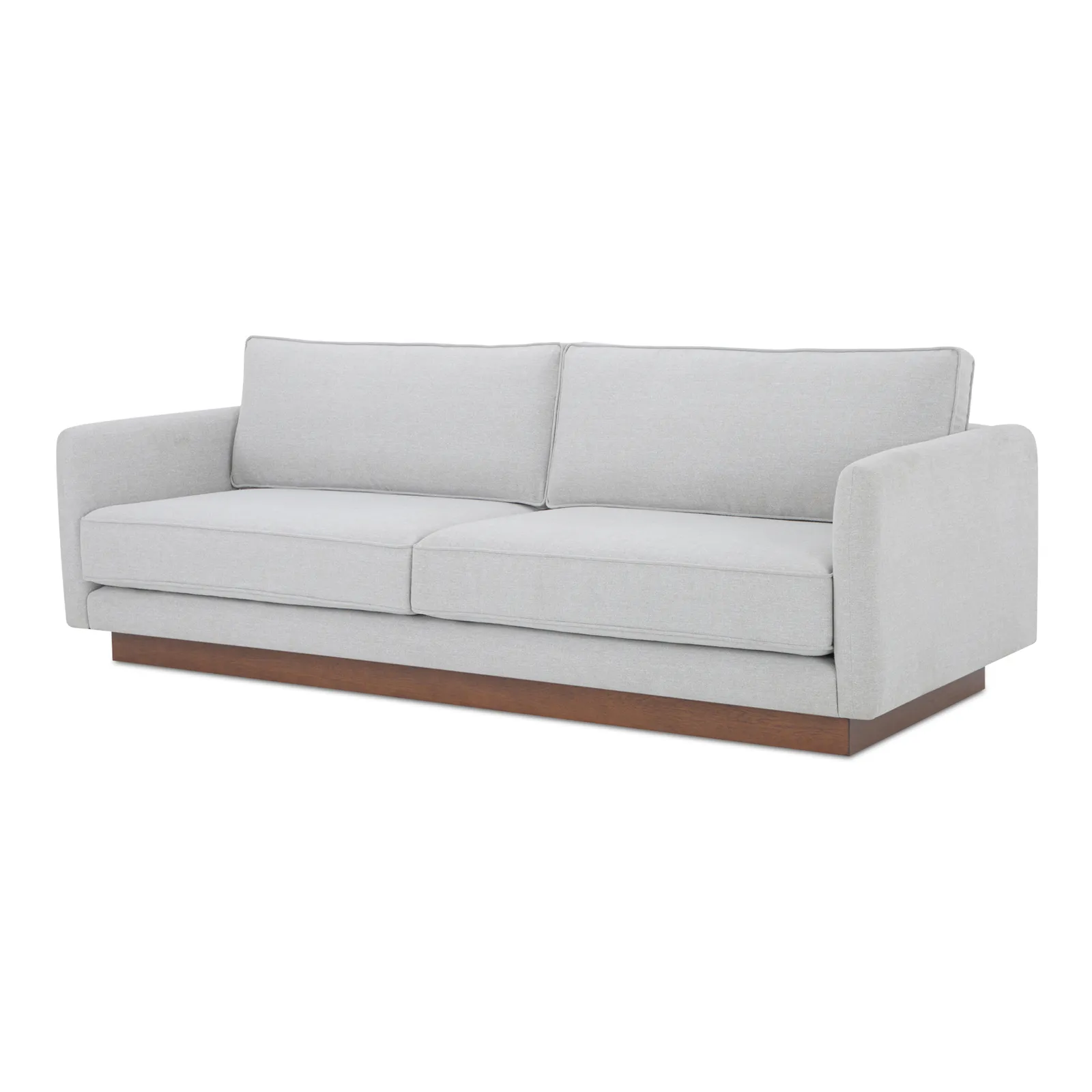 The Vernon sofa blends mid-century design with modern functionality. It features a wooden plinth base for an elevated, lighter appearance. This sectional offers unmatched comfort with removable cushions. Upholstered in durable, OEKO-TEX and Green Guard-certified fabric, it is ideal for family living, combining everyday practicality with durability.