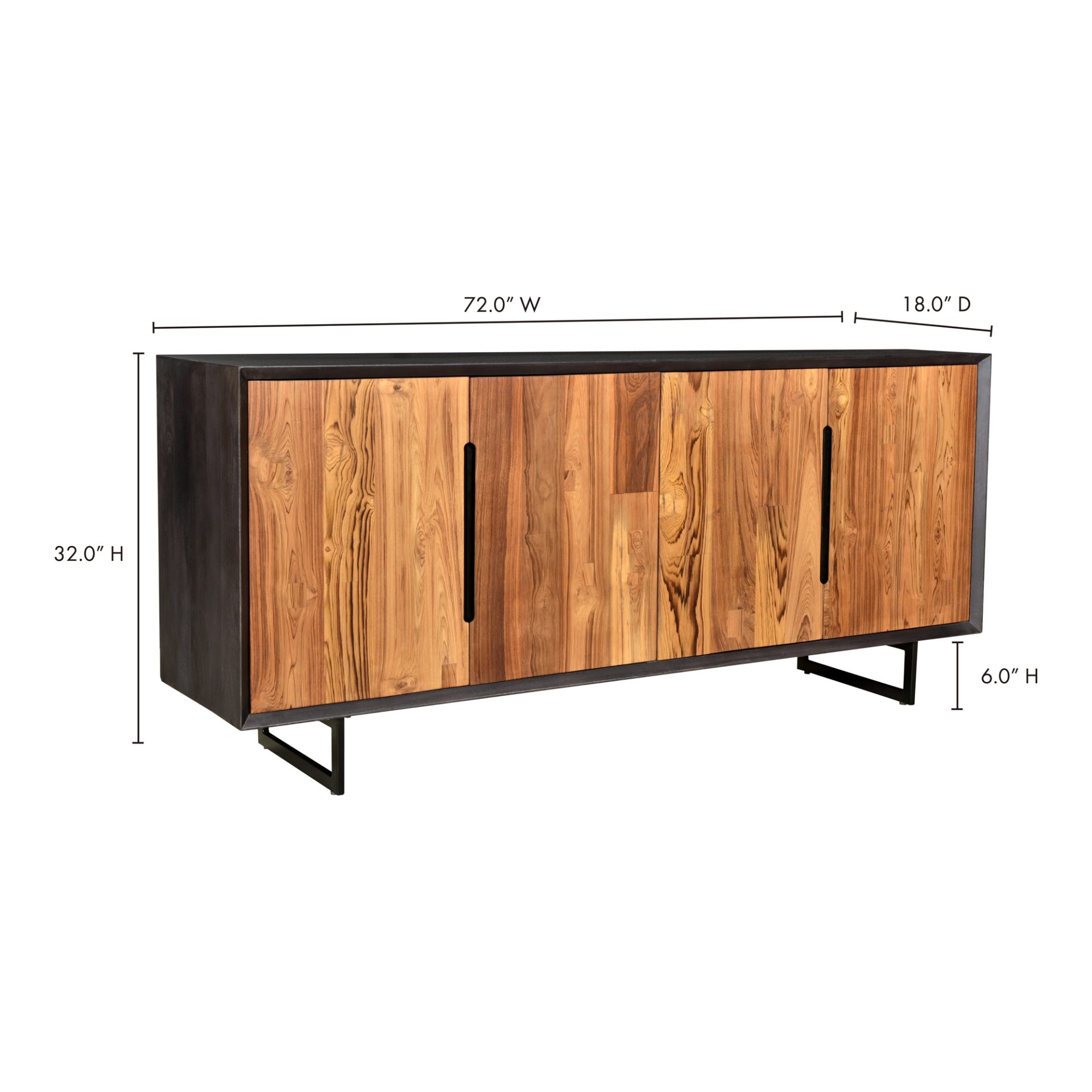 Solid reclaimed teak defines the unique simplicity of the Vienna Collection. Each piece of wood exhibits its own knot and wood grain finish. With four large shelves, this sideboard provides ample storage and a sophisticated design.