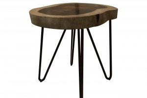 • Wood species featured include pine, mango, habillo and parota. Metal frame base offers durability for a lifetime. C-shape allows for use while seated on a sofa, love seat or chair.