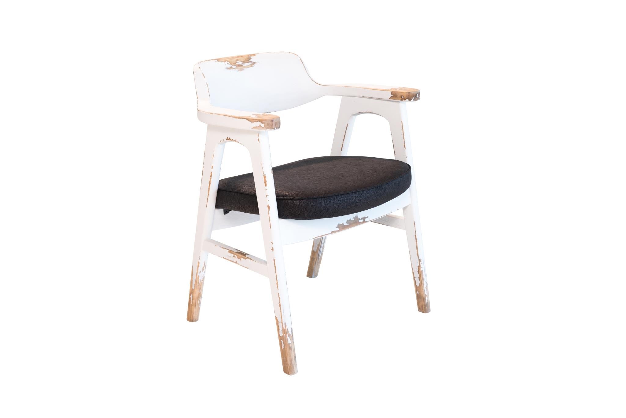 / Wagner Arm Chair Antique White / Black Faux Leather