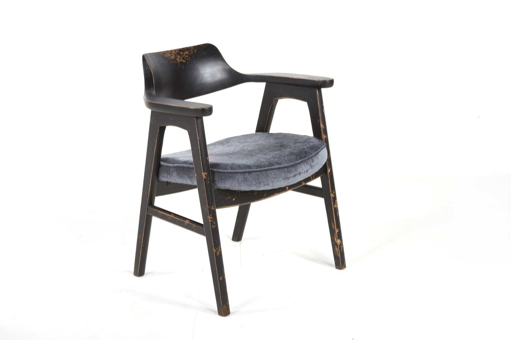 / Wagner Arm Chair Distressed Black / Vintage Pewter