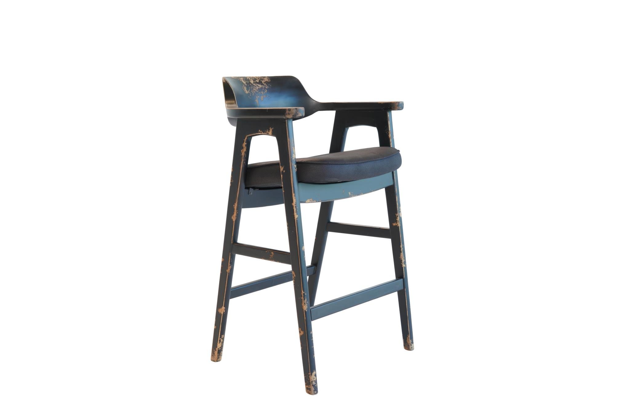 Wagner Bar Chair Distressed Black / Black Faux Leather