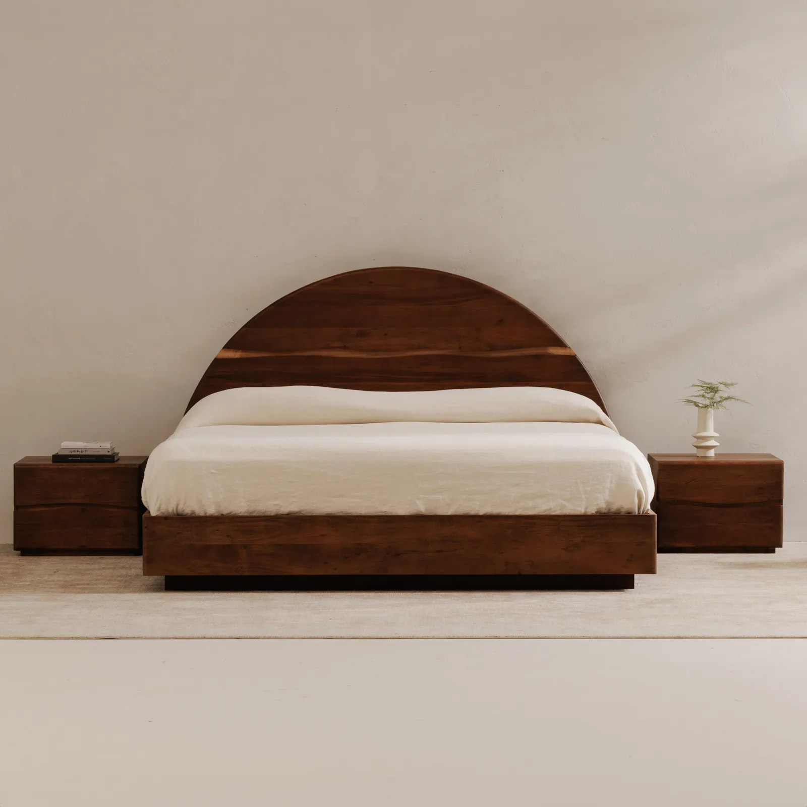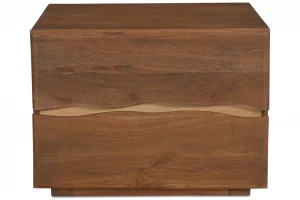 The Watson nightstand is a refined blend of organic charm and modern sensibility. The clean, contemporary aesthetic resonates through its use of live-edge detail on solid Acacia, while thoughtfully rounded edges and a lessened wooden slab thickness amplify its appeal. Two spacious drawers are fitted with side-mount metal ball-bearing glides and safety stops for a smooth, seamless feel.