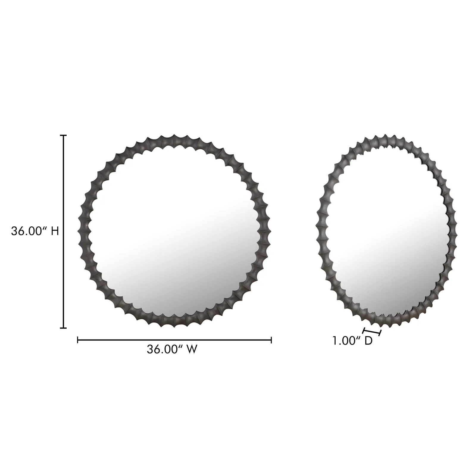 The Whitby mirror embodies expert craftsmanship in its high-quality cast aluminum frame. Finished in an aged black cast, it showcases a natural array of imperfections, including subtle texture marks and color variations, ensuring that each piece is unique. This mirror is a testament to the beauty found in the perfectly imperfect, giving a touch of individuality.