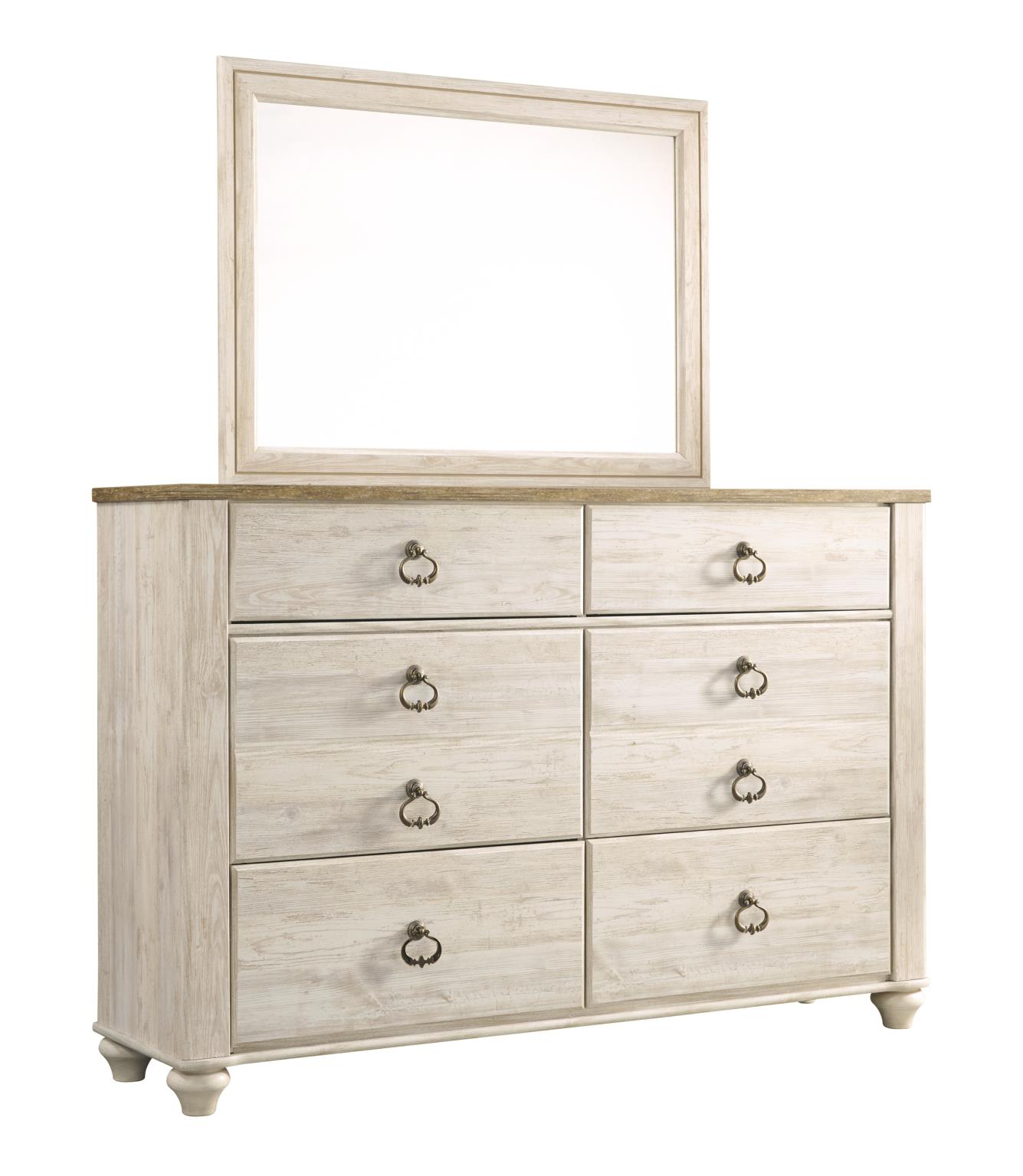 This dresser and mirror set is the ultimate statement piece for a coastal cottage or shabby chic inspired retreat. Whitewashed finish on the drawers and sides is wonderfully easy on the eyes. Paired with the unique faux plank top,,,, it’s a driftwoody look that has our minds drifting away to beachy-keen escapes.